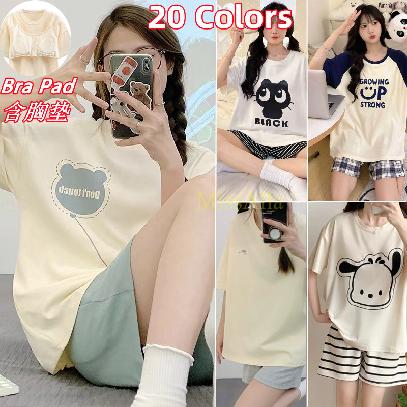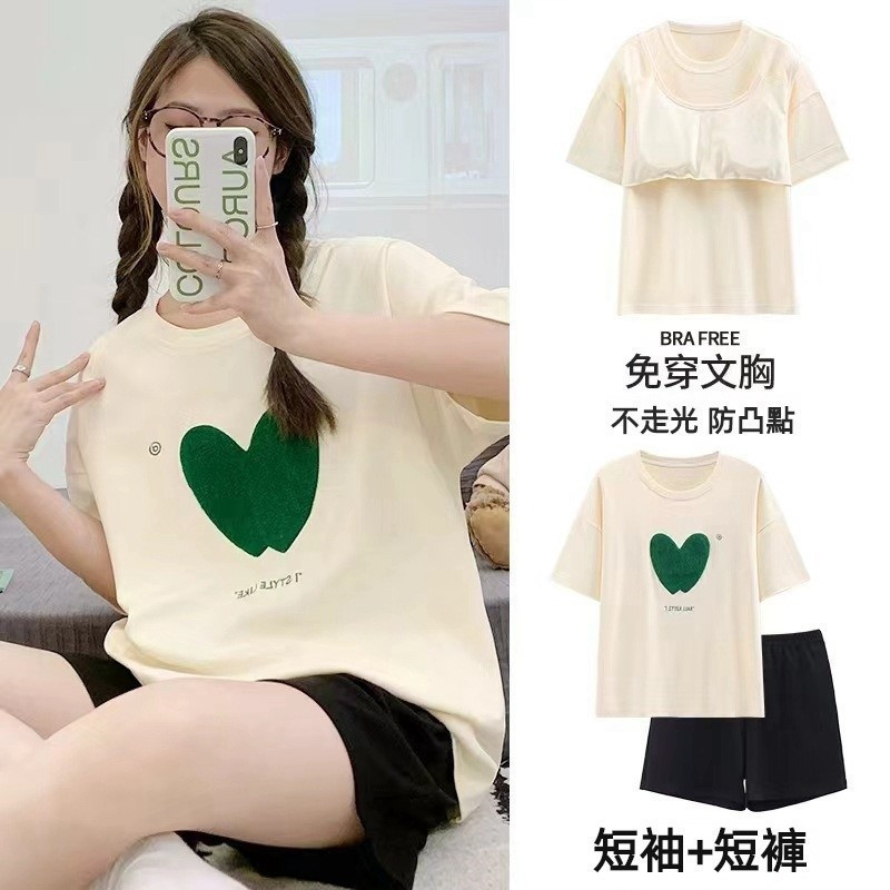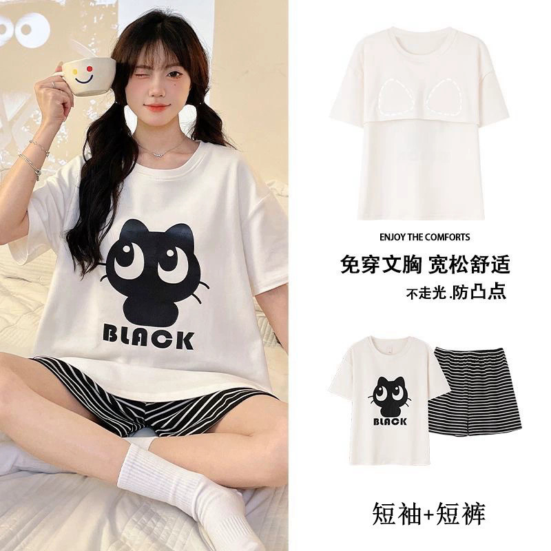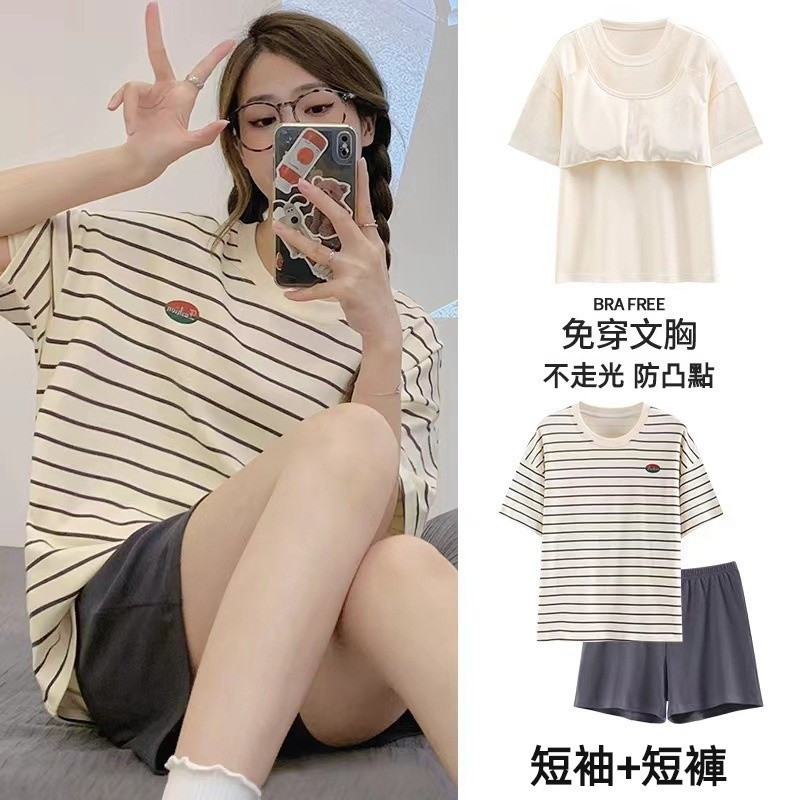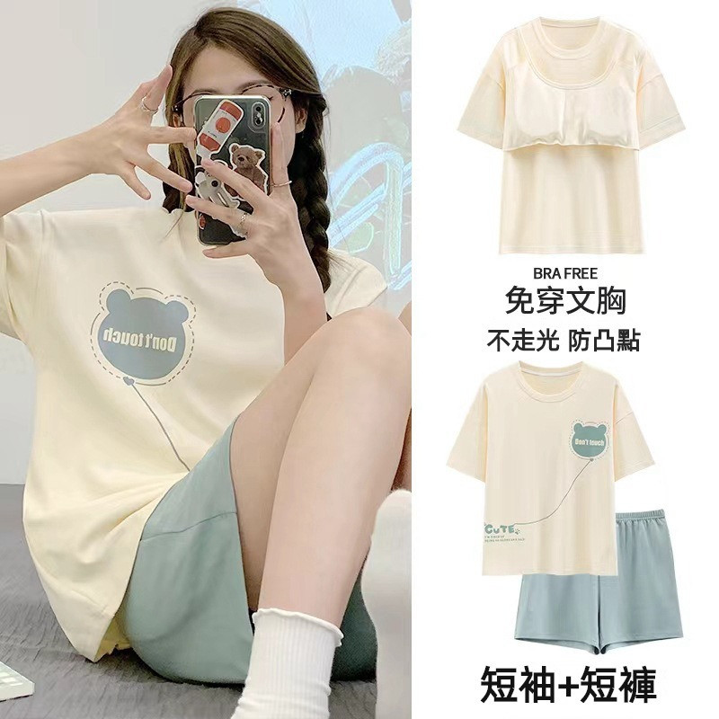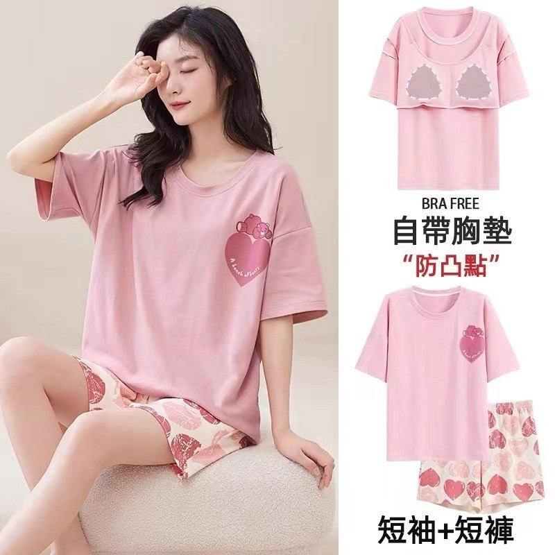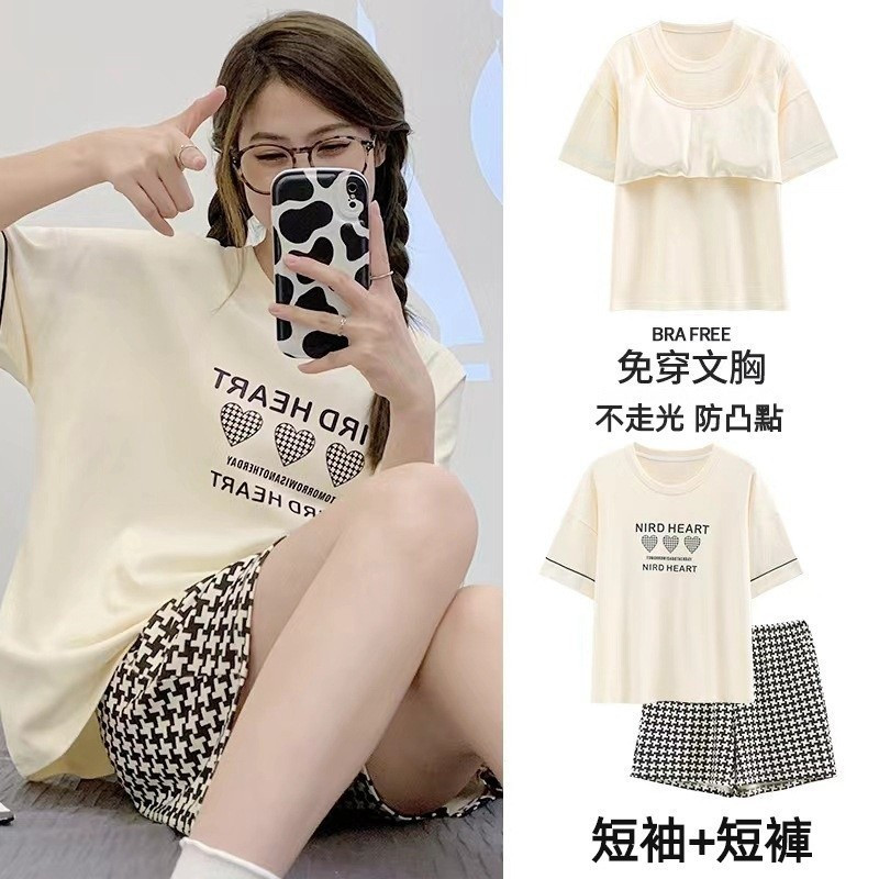 【高质量】睡衣女款2025新款夏天可外穿舒适夏季女生带胸垫甜美可爱短袖短裤 Pajamas for Women - Summer Comfortable Short-Sleeved Shorts with Chest Pads | Stylish Outdoor Wear