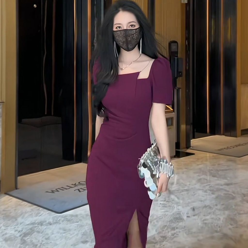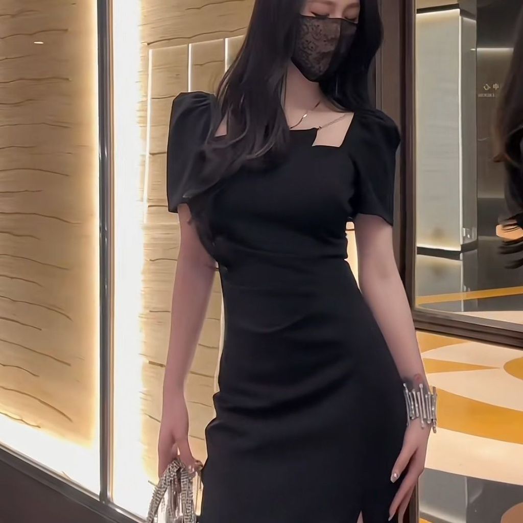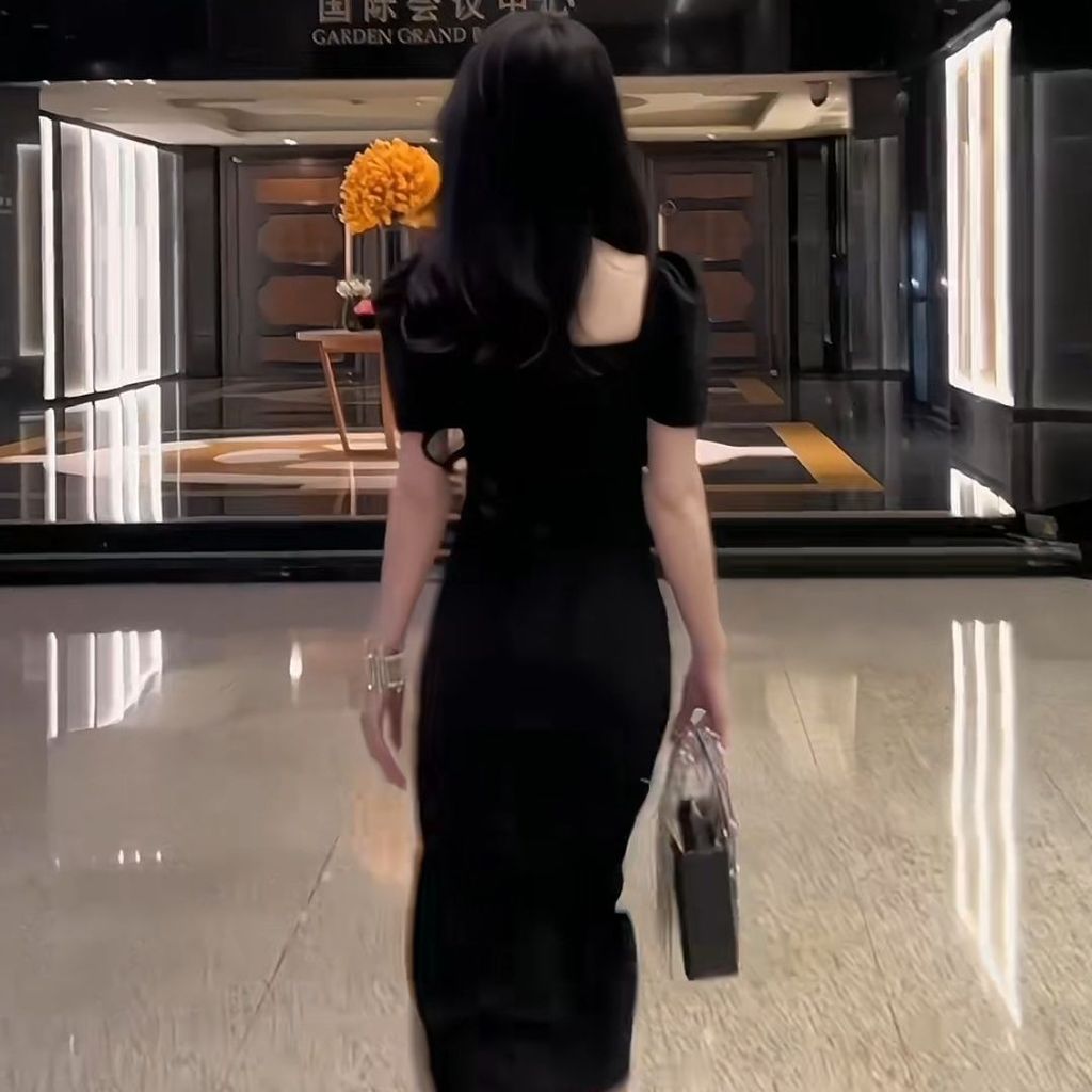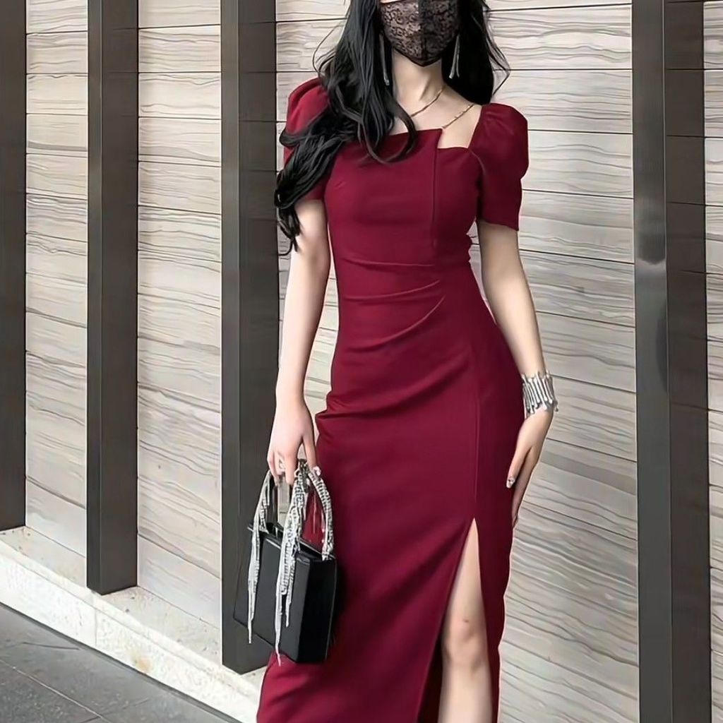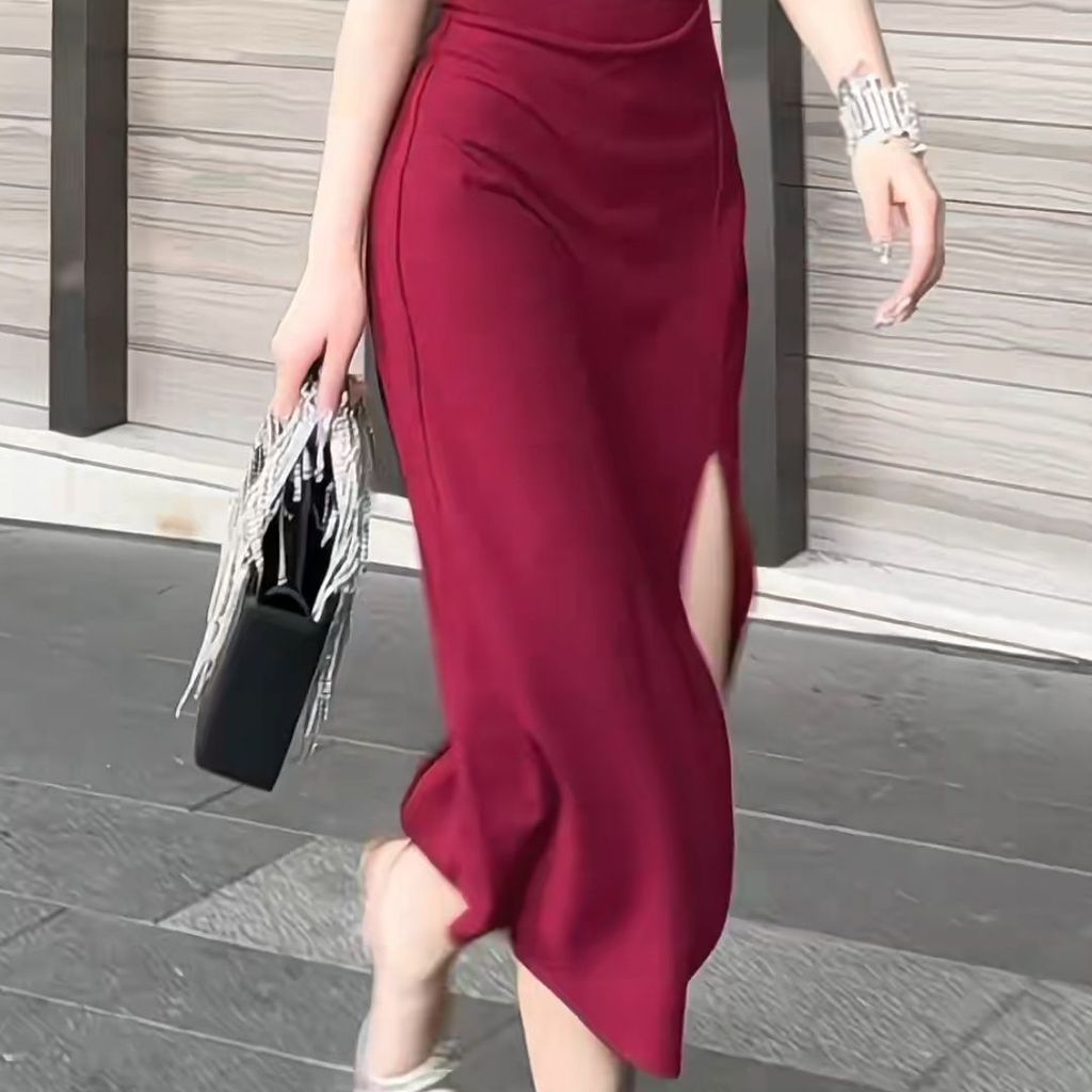 2025 Summer Fashion Classy Chain Design Narrow Waist French Long Split Dress