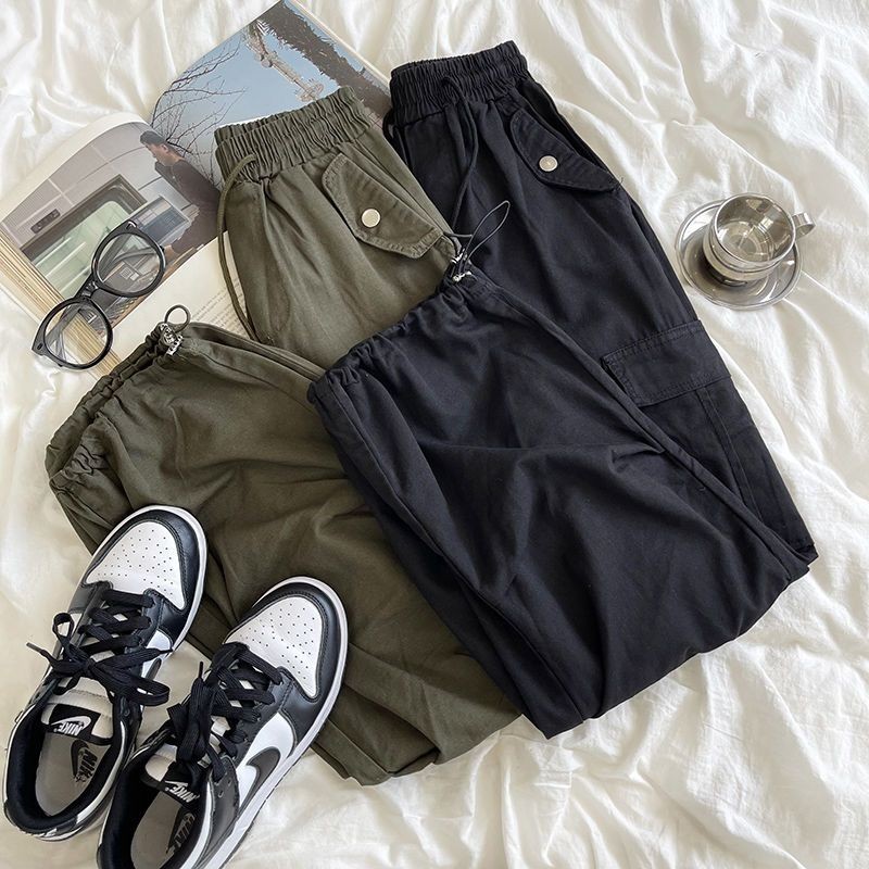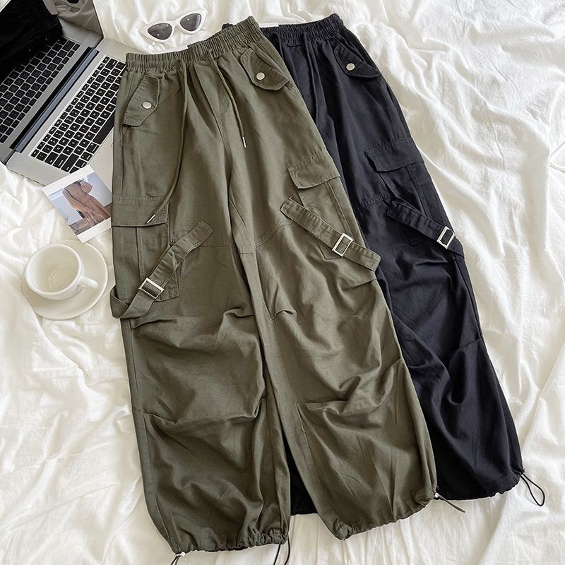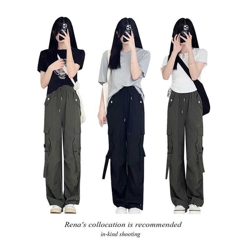 日系工装裤女大码女装2025新高腰显瘦直筒裤子女Wide Leg Pants Loose Long Cargo Pants Women Pants Many Pockets