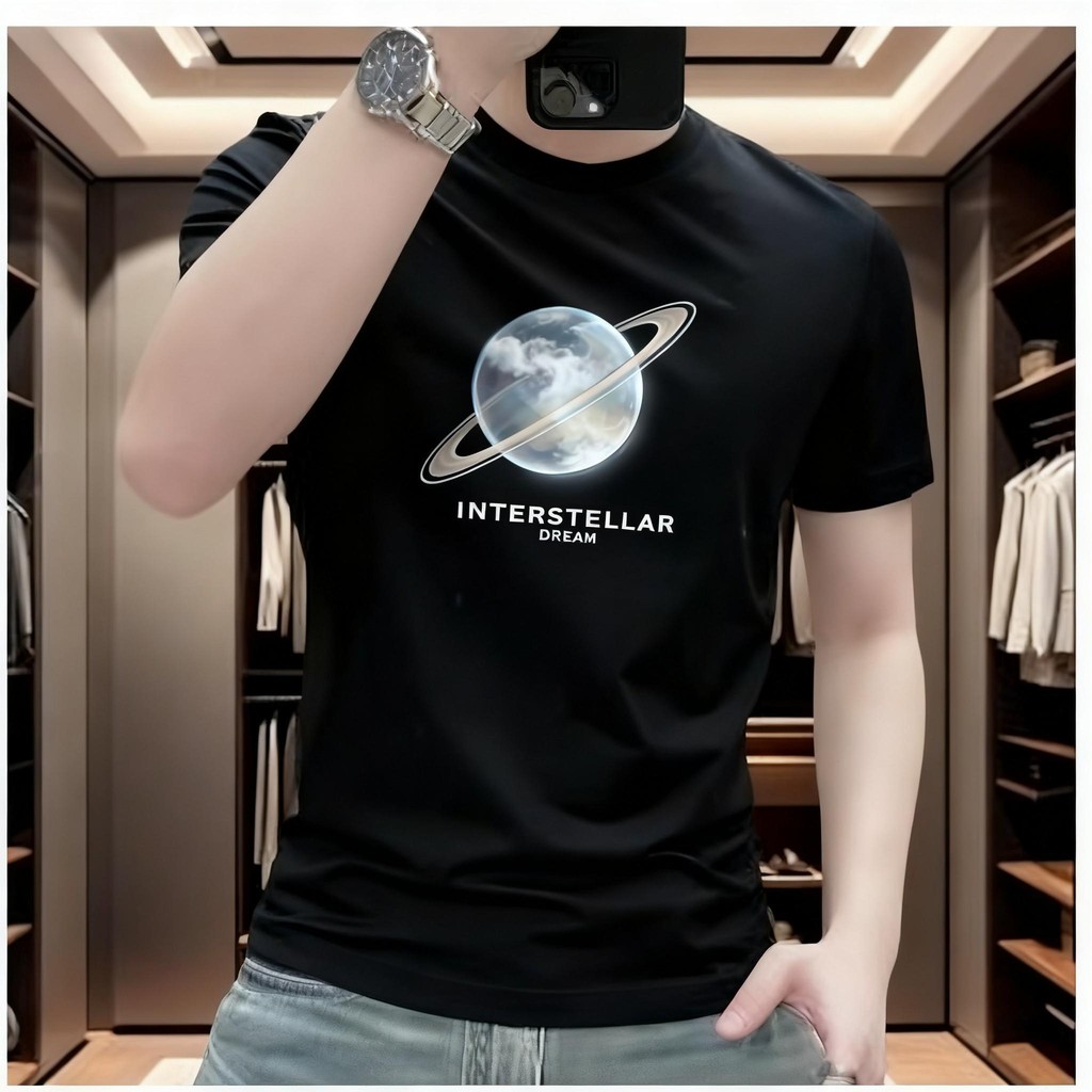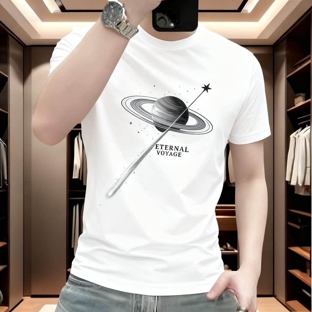 2026 gaya Amerika bergaya lengan pendek bergaya bergaya T-shirt bercetak untuk lelaki, lengan pendek leher bulat kasual