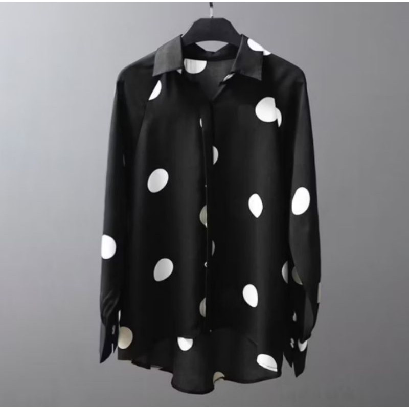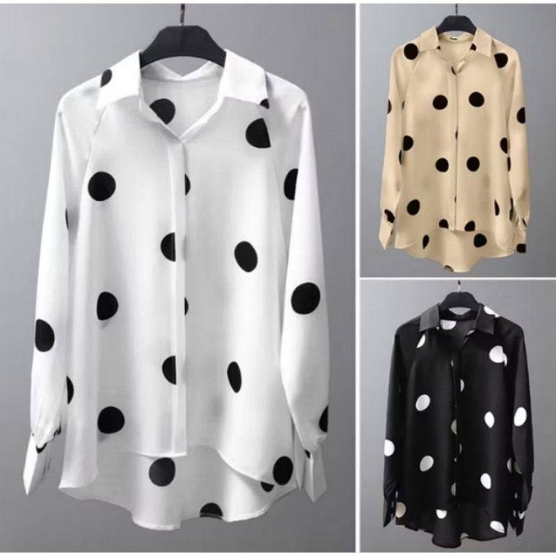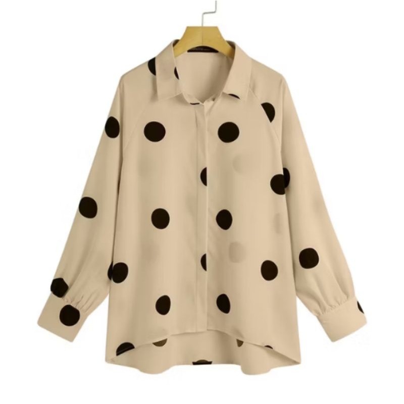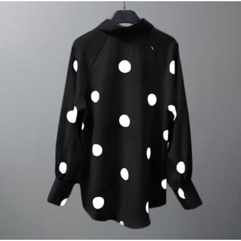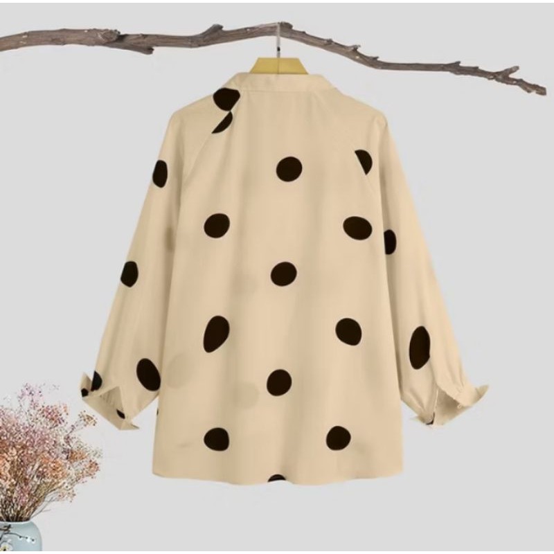 2026BLOUSE POLKADOT TEMA RETRO WOMEN LONG SLEEVE POLKA DOT TURN-DOWN COLLAR BUTTON CUFF BLOUSE