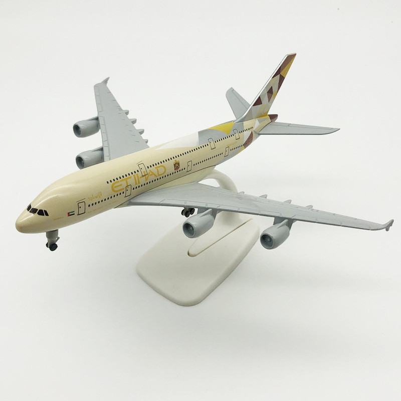 20cm Etihad Airbus A380 with Landing Gear Airways Diecast Airplane Model Alloy Metal Air Plane Model Toys