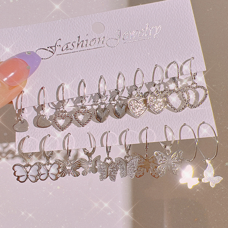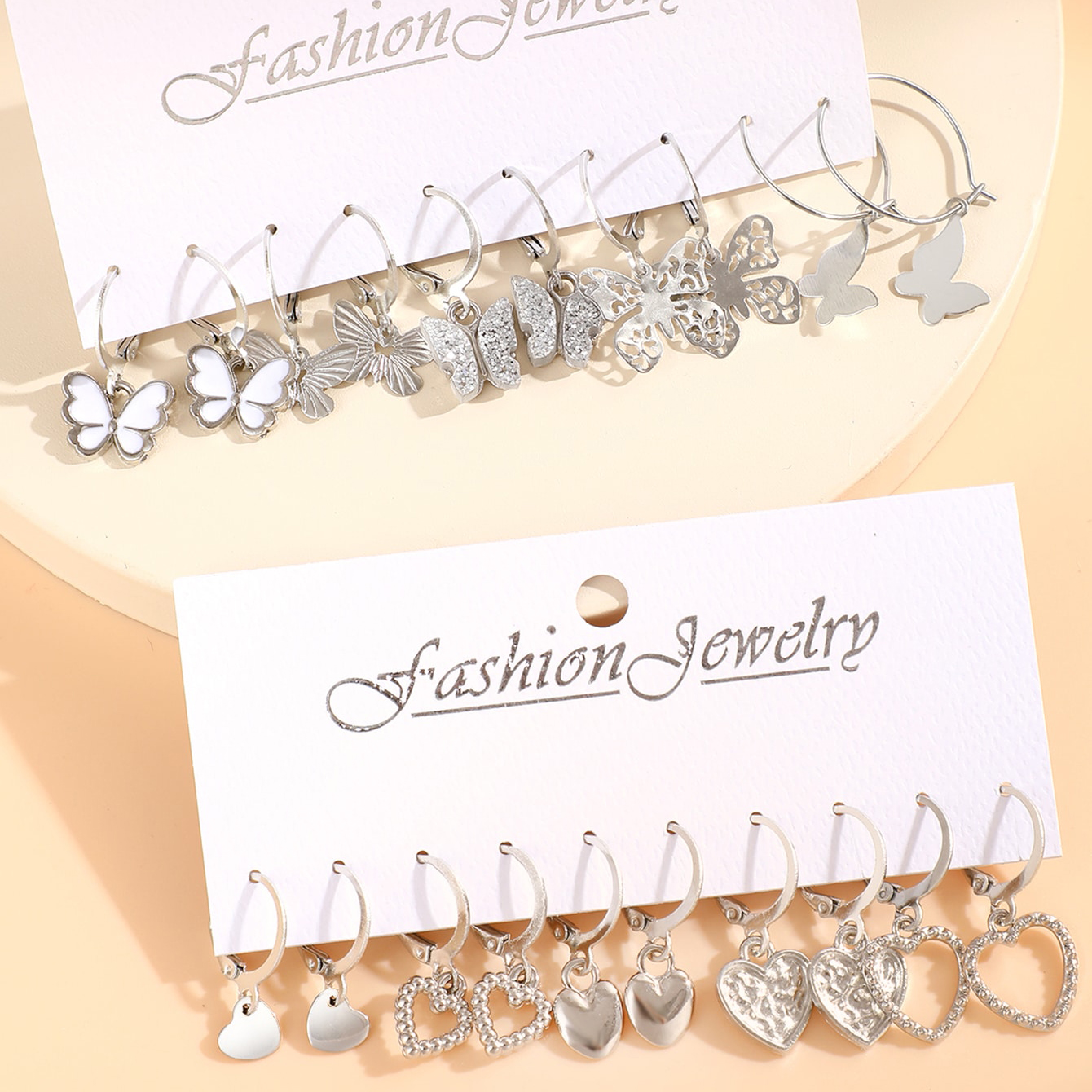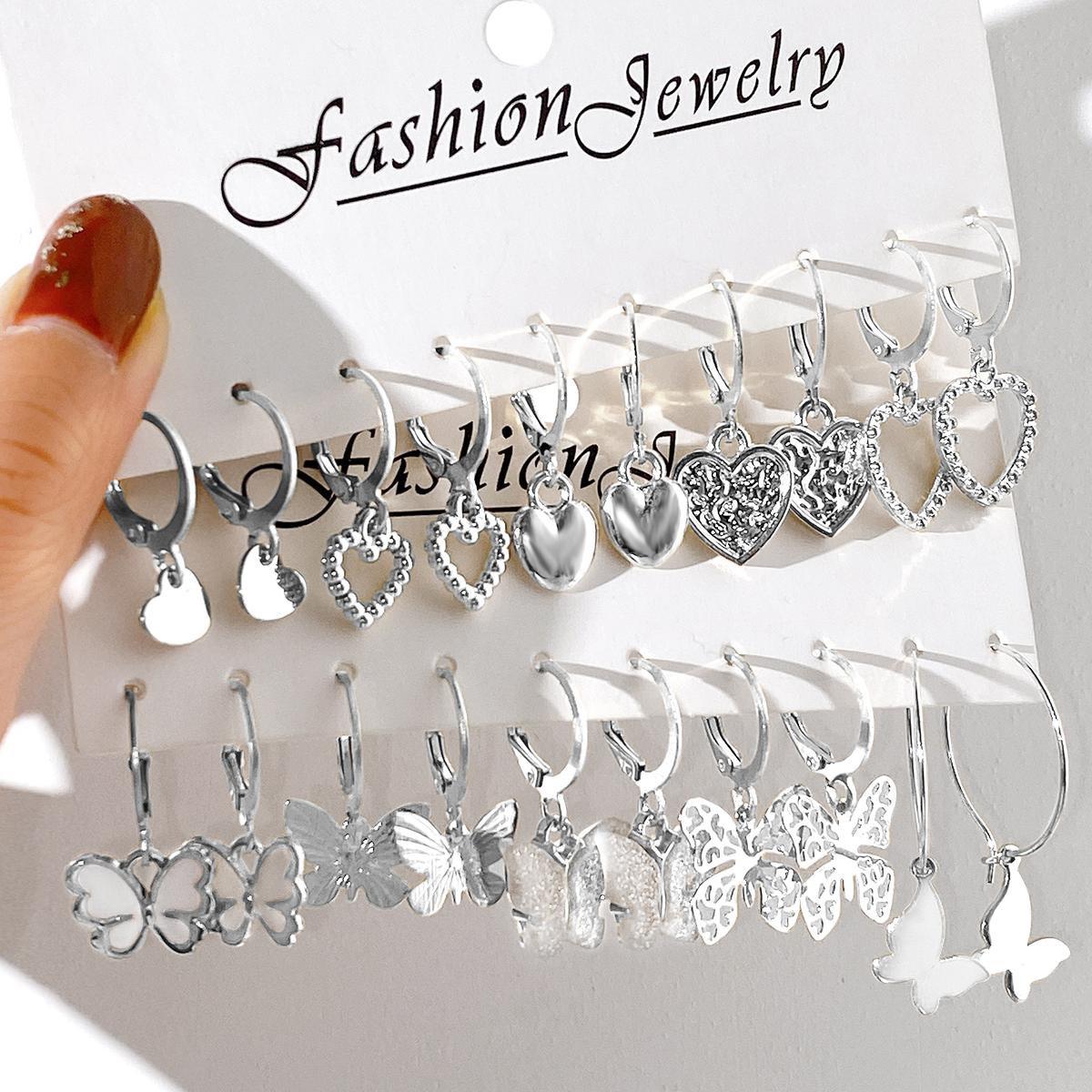 20Pcs/Set Luxury Gold Silver Heart Butterfly Drop Earrings for Women Accessories Hypoallergenic