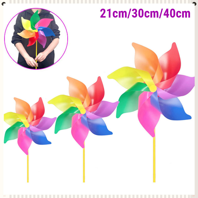 21/30/40cm Windmill Toys Plastic Colorful Wind Spinner with Rod Kids Craft Toys Garden Lawn Party Decor