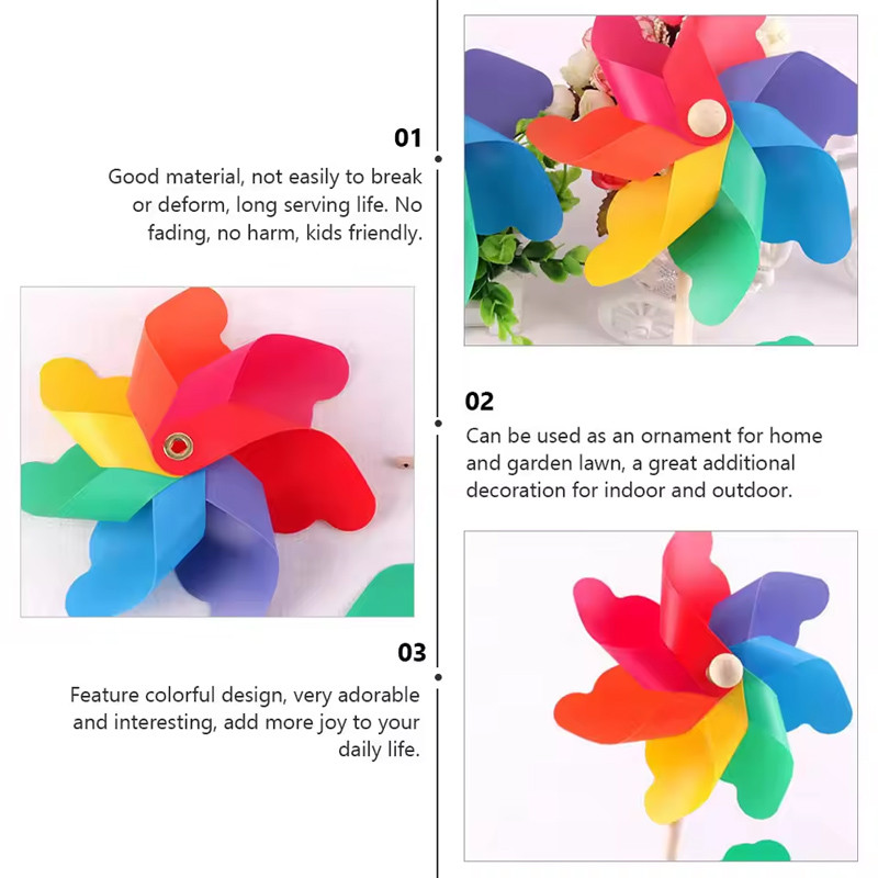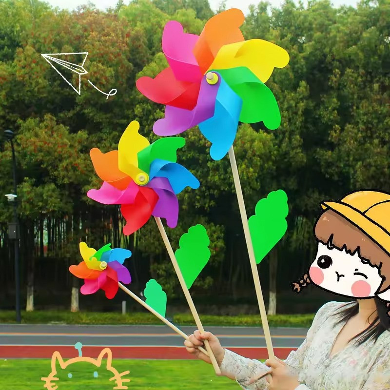 21/30/40CM Wooden Pole Seven Leaf Windmill Garden Yard Outdoor Ornament Kids Toy Kincir Angin 风车玩具