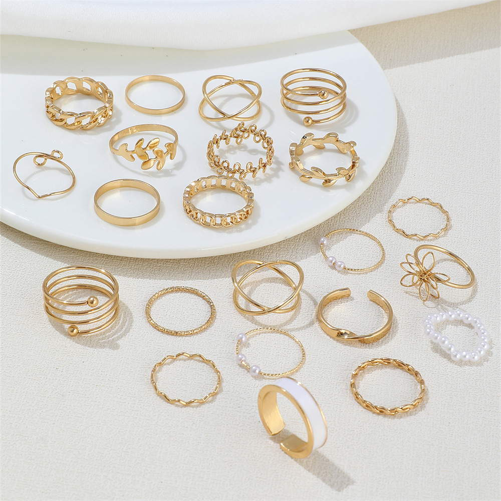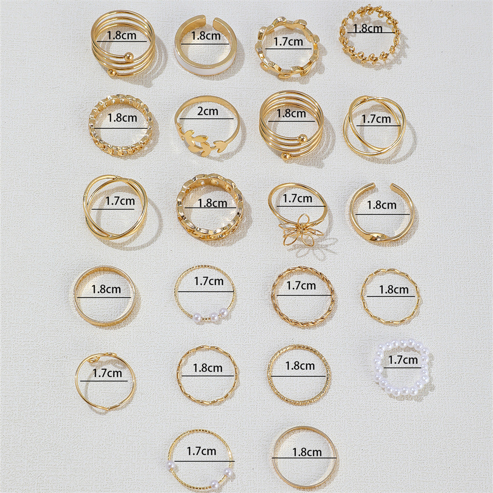 22 Piece Set Fashionable Imitation Pearl Flower Leaf Geometric Design Ladies Ring Set