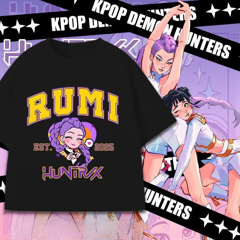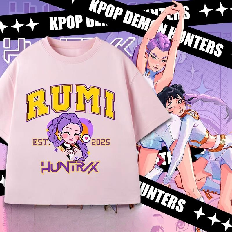 【220G 100%Cotton T-shirt】NELLY COD 2025 Baru Pakaian Kanak-kanak Kartun comel Pemburu Iblis Anime Corak Tren ##1