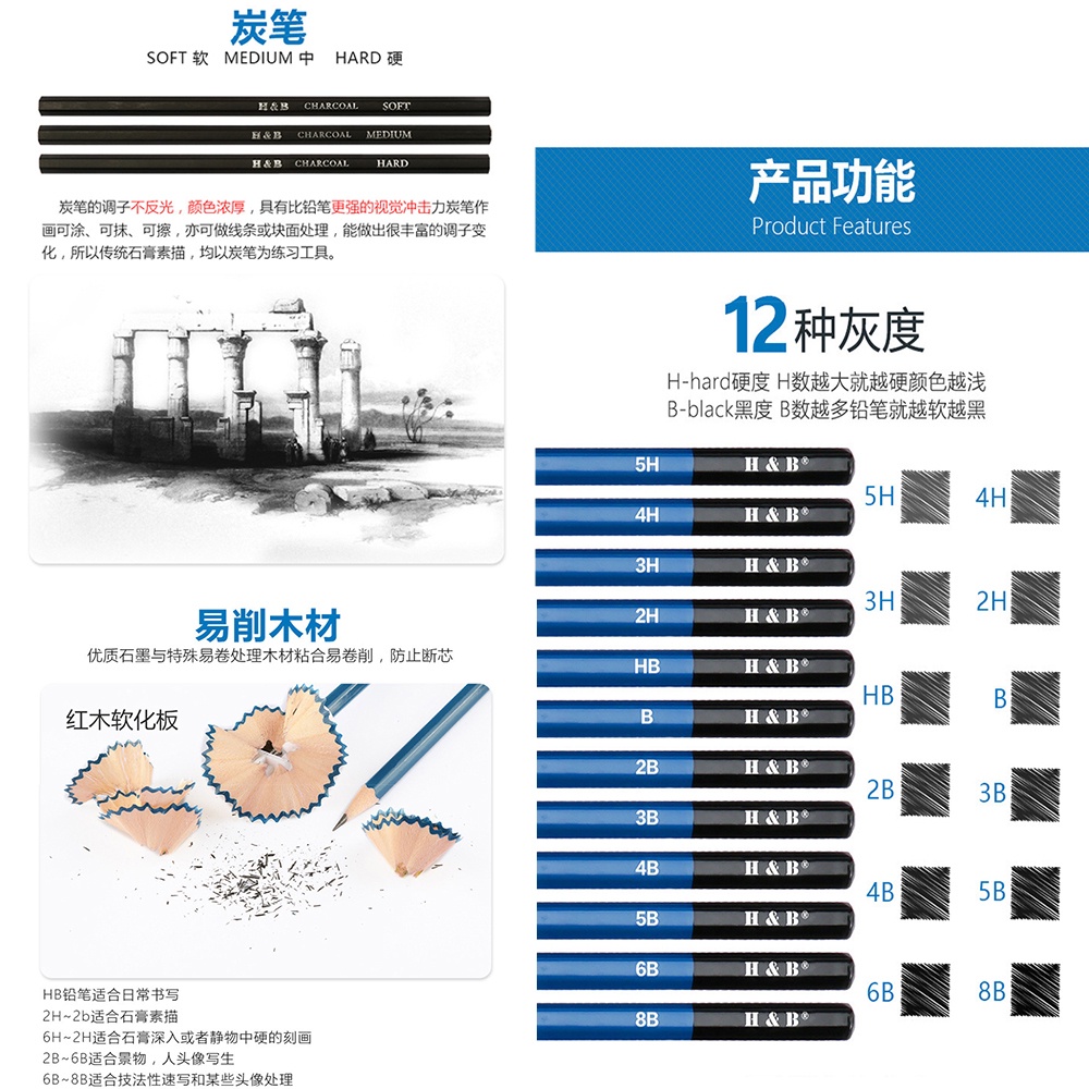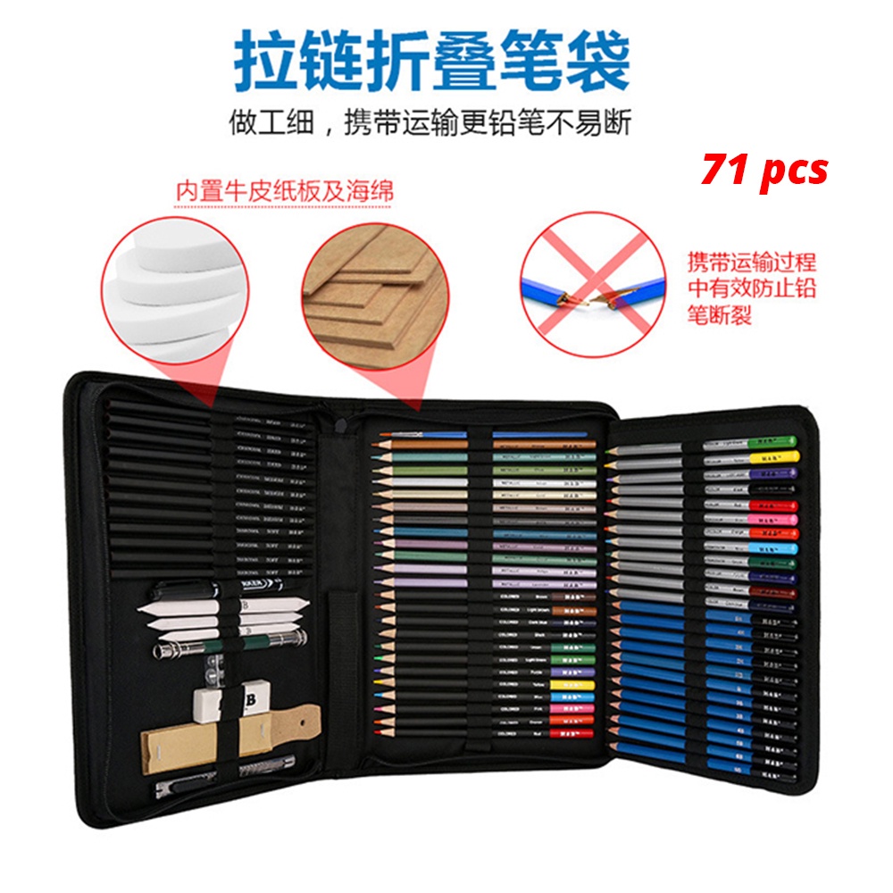 24/35/71pcs Sketch Pencil Set Art Craft Professional Artist Drawing Kit Graffiti Portable Student Supplies Colour Color