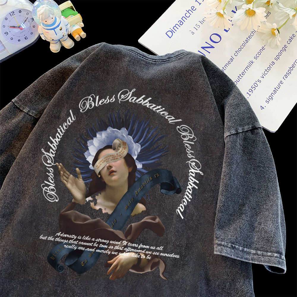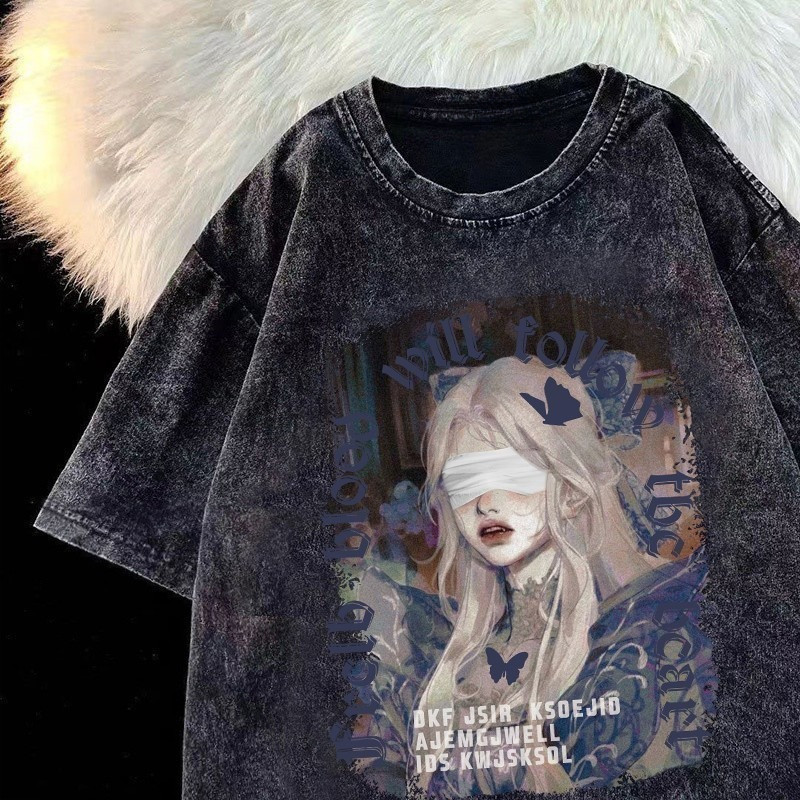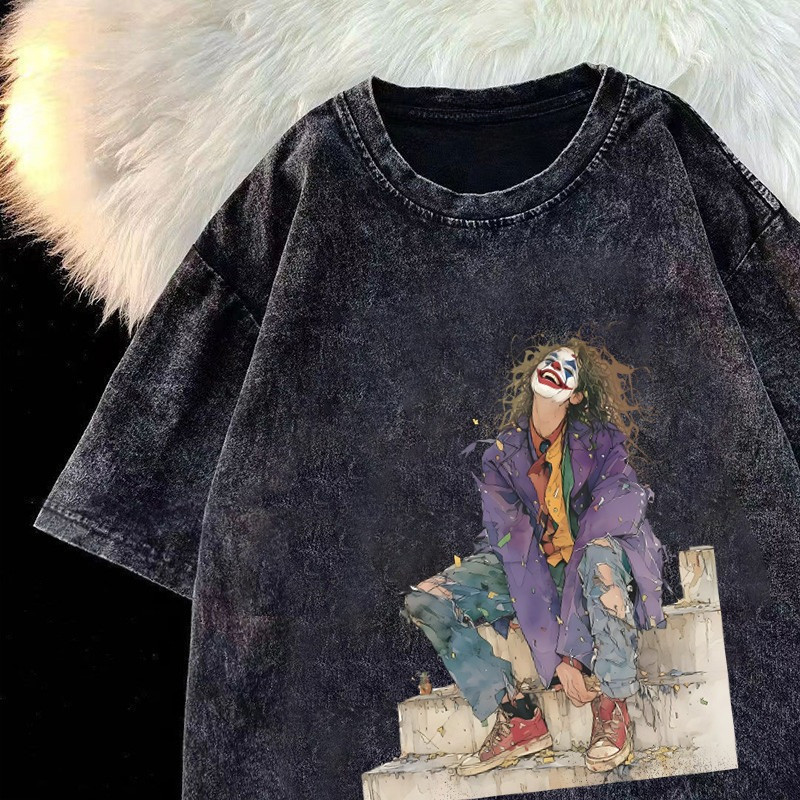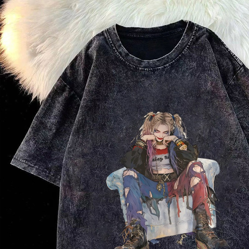 ✨24Hour shipping✨ Maise COD Bleached T-shirt cartoon character print oversized 100% pure cotton vintage bleached T-shirt