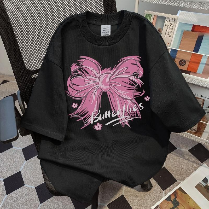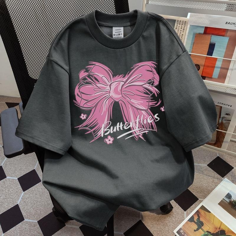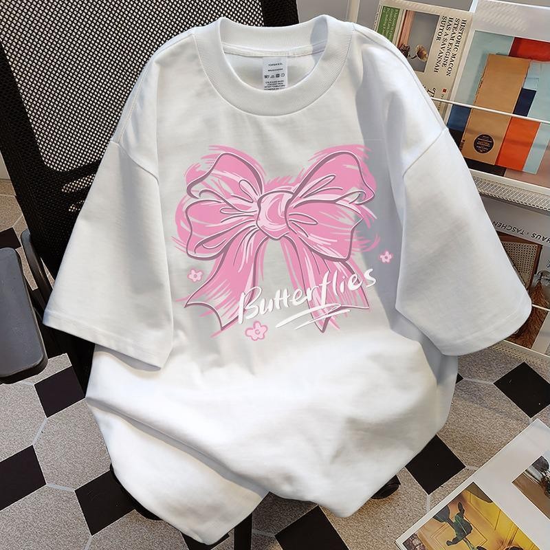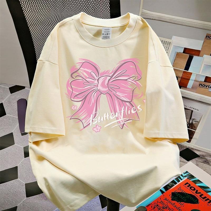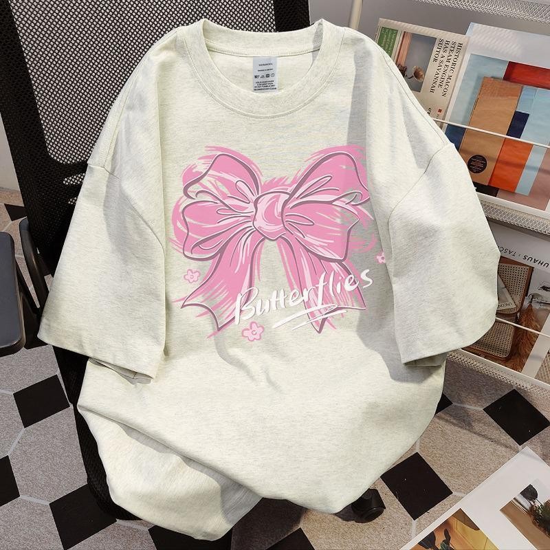 (✨24Hour shipping✨)Maise STUDIO Ladies' casual T-shirts with pink bow prints, 100% cotton