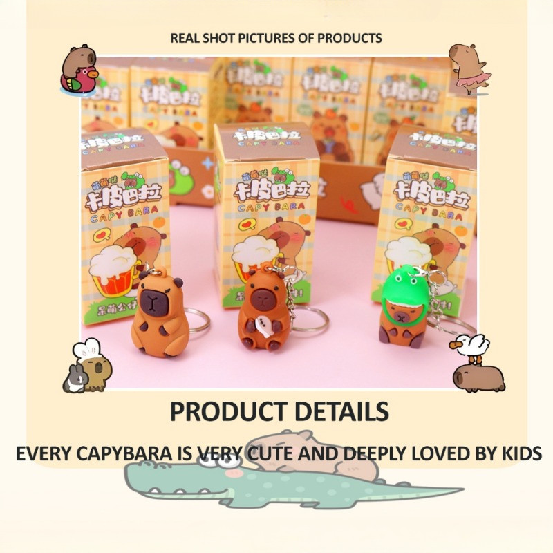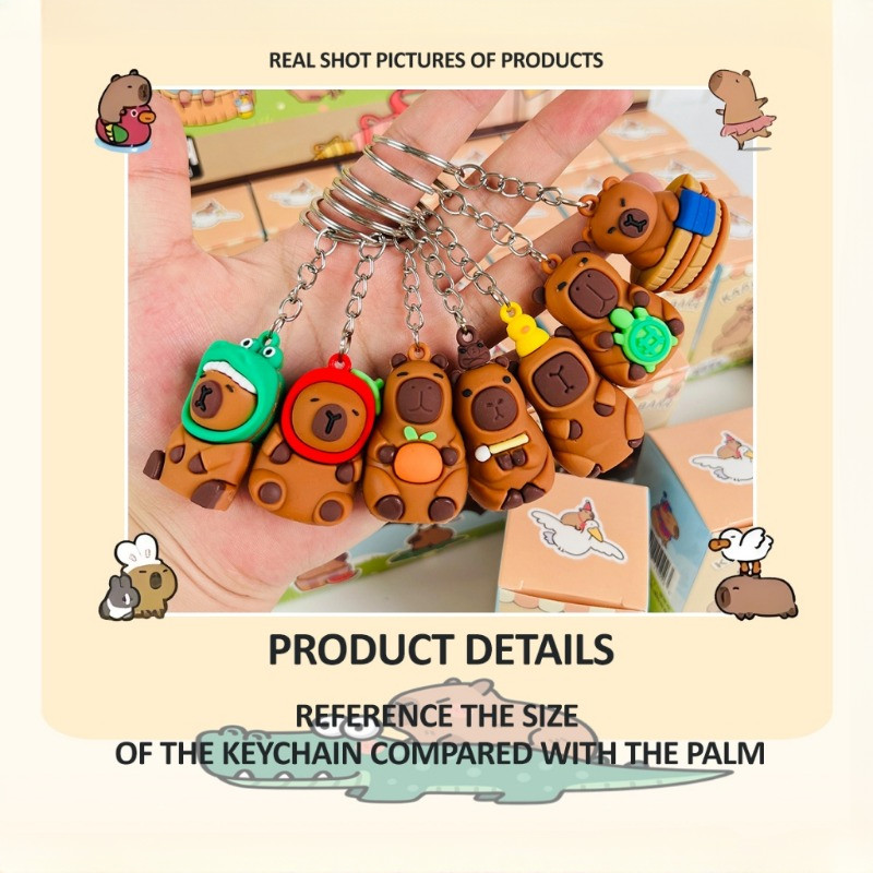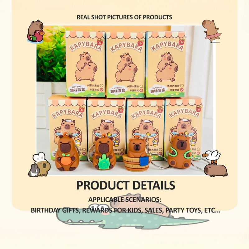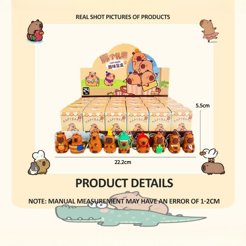 24PCS Capybara Mini Keychain Blind Box Cute Cartoon Doll Bag Pendant Surprise CNY Gift for Kids 卡皮巴拉 盲盒 钥匙扣
