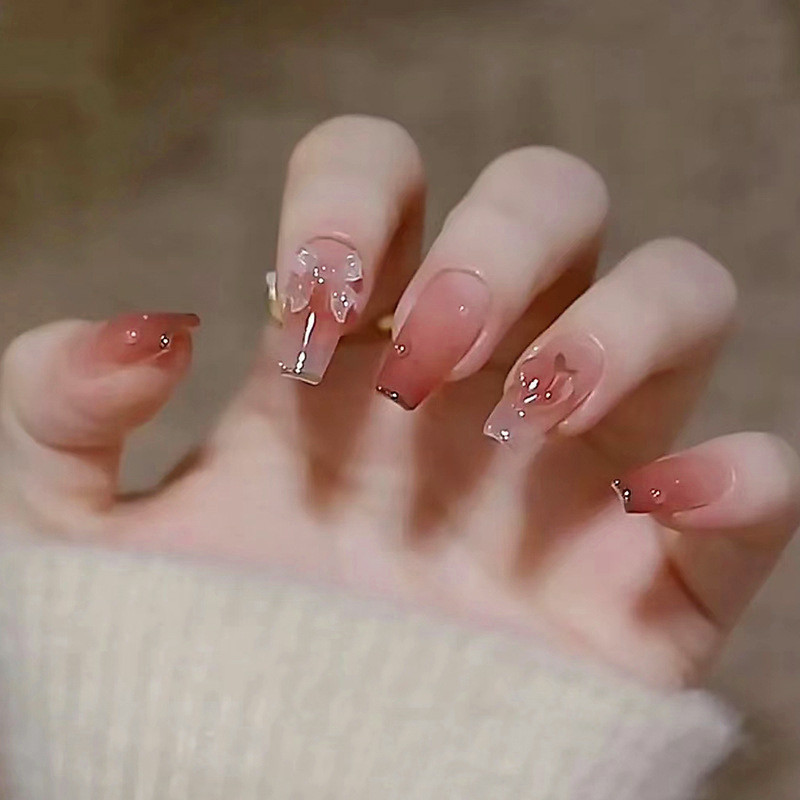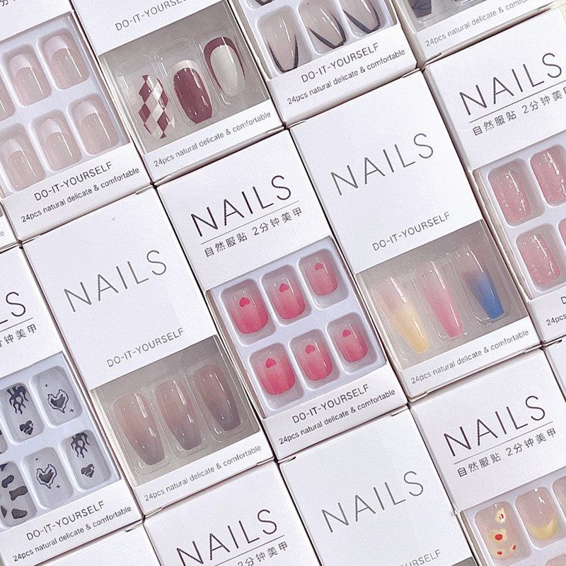 【 24PCS+Glue 】Diamond False Nail Set Fashion False Nail with Glue False Nail Art Detachable and Reusable COD