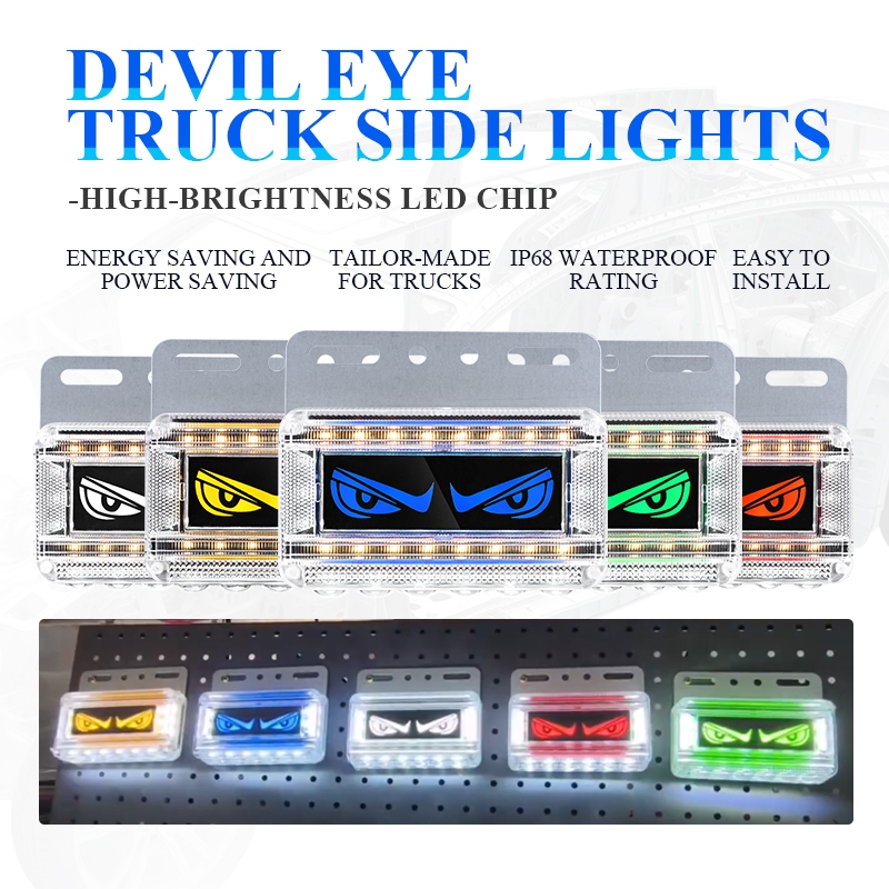 24V Heavy Duty Truck Angel Demon Eye LED Side Marker Lights - Waterproof, Super Bright Waist-Mounted Beacons with Turn Signal Sync Ground Illumination Durable Off-Road Lighting