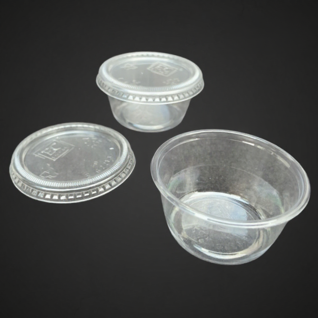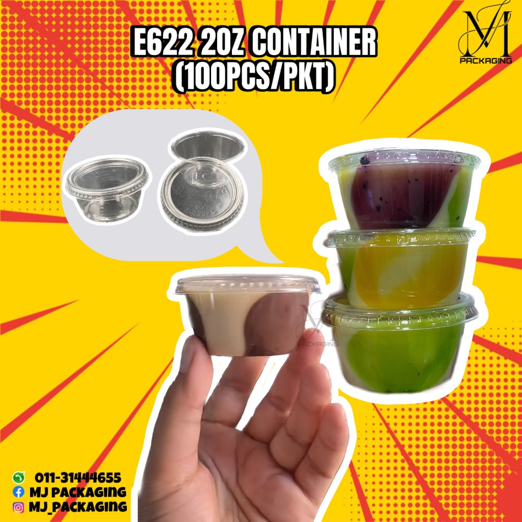 2oz Round Container & Lid [ 100sets± ] EC E622C - Disposable Plastic PET Food Sauce Container - Bekas Sos