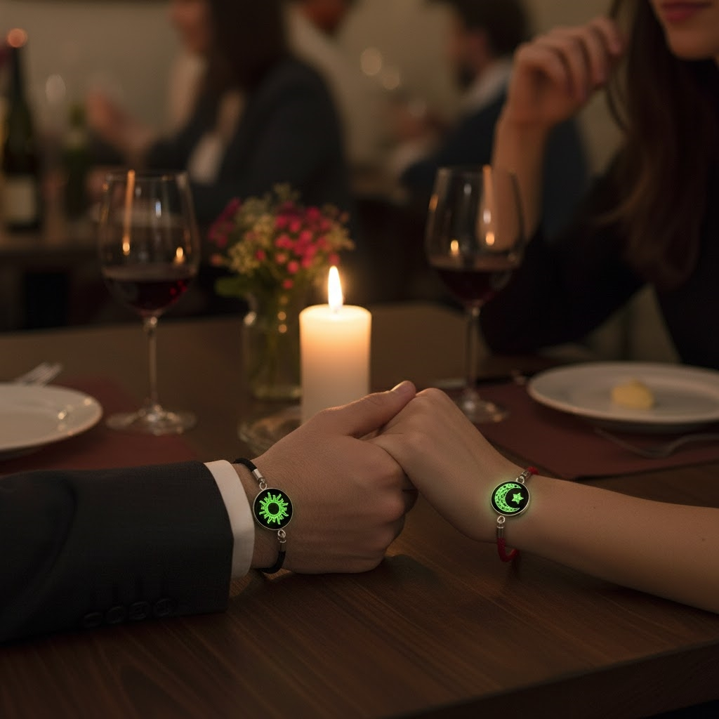 2Pcs/set Sun Moon Stainless Steel Luminous Time Gemstone Couple Bracelet For Best Friend Friendship Birthday Gift
