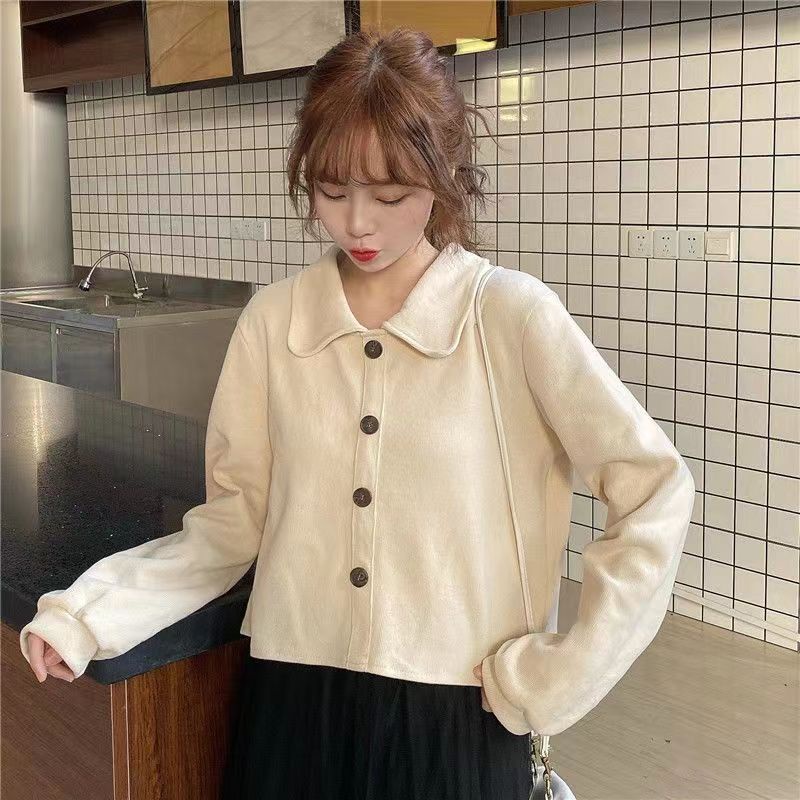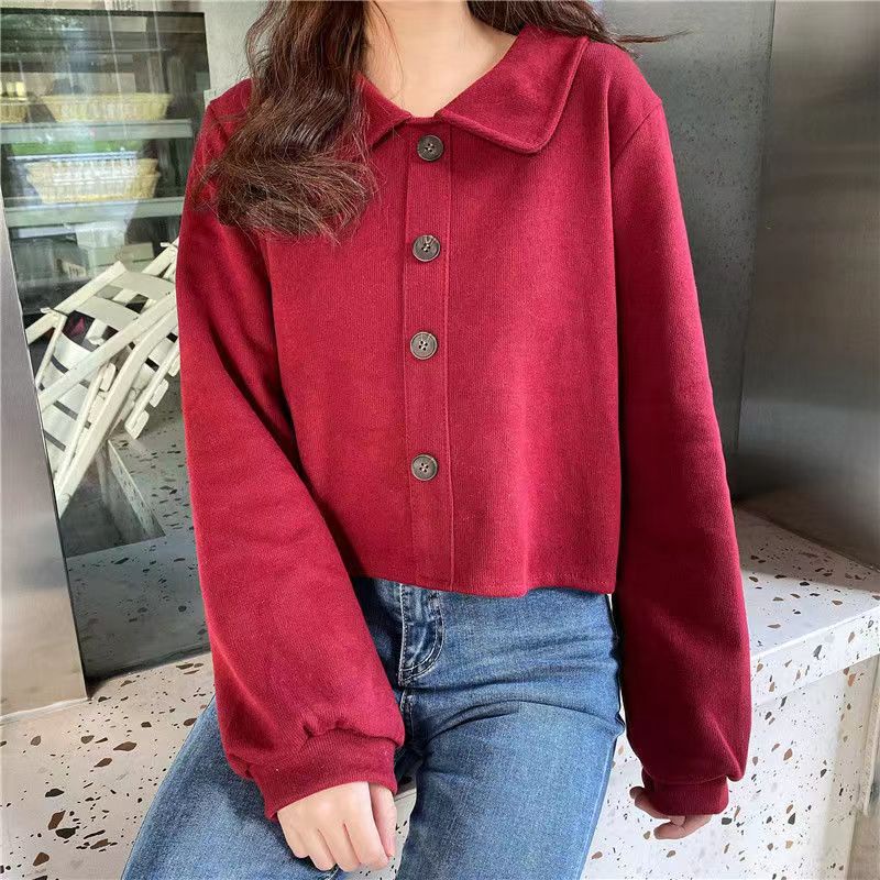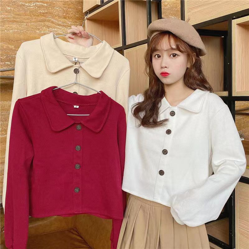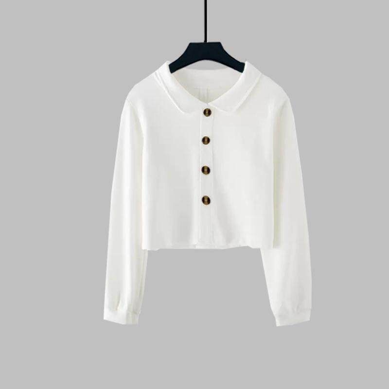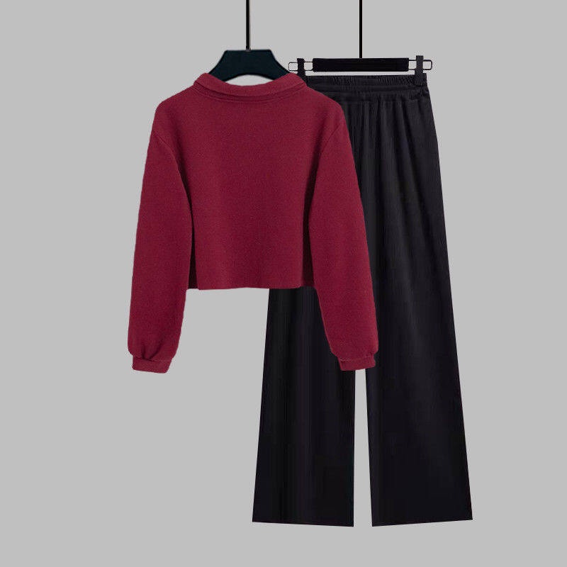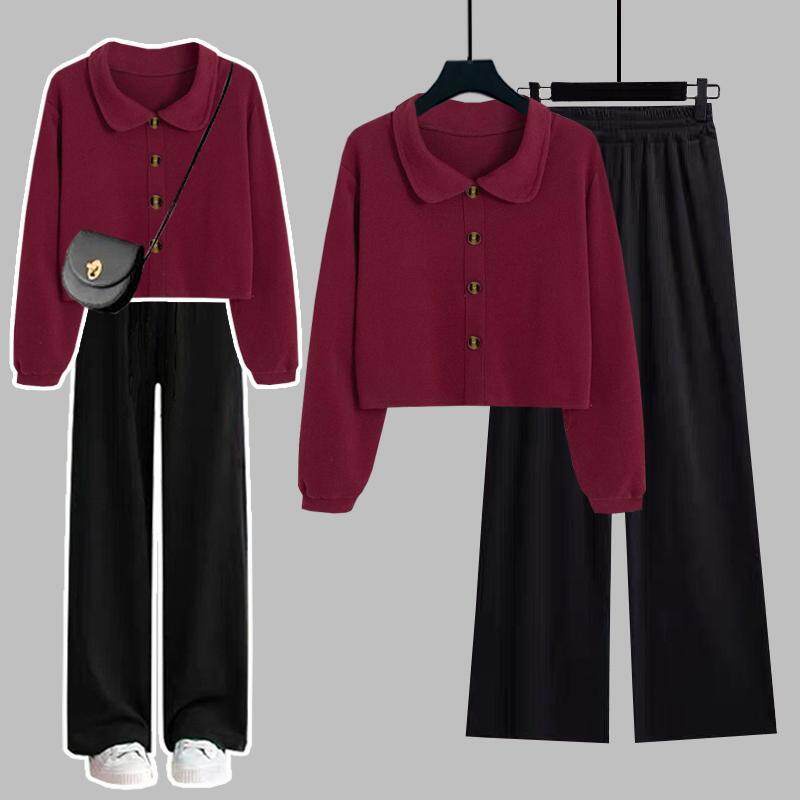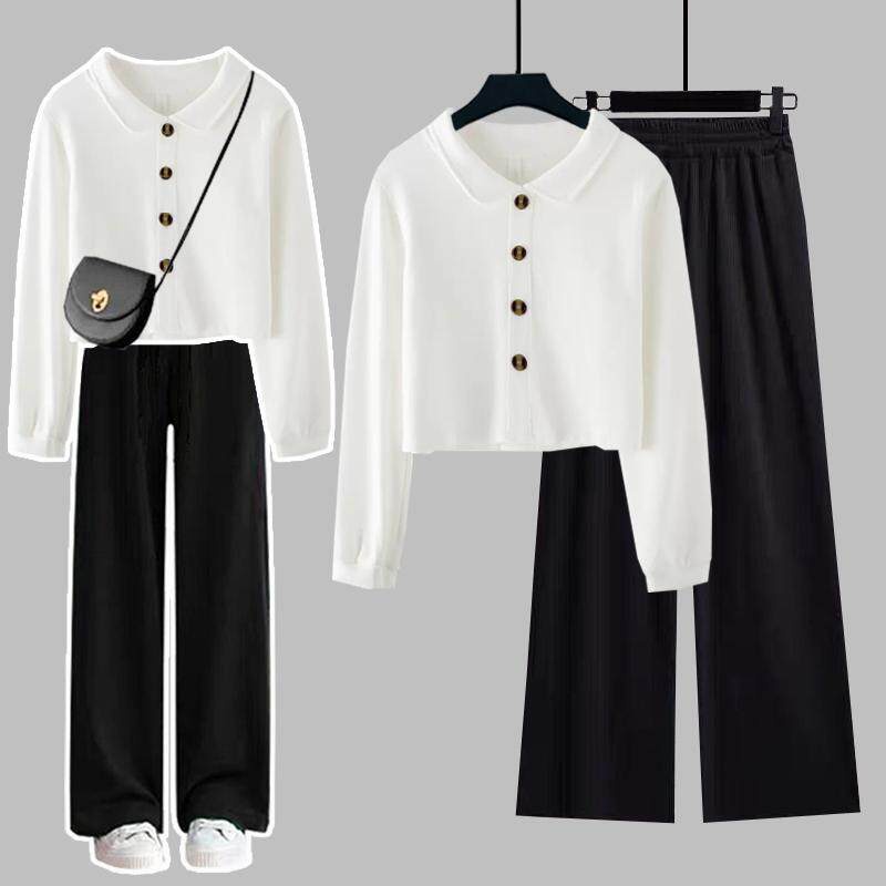 2PCS/Single Women Crop Top Sweater Set Wear Outfit Korean Style Fashion Suit Women's Vertical Buttons Shirt Wide Leg Pants Casual Woman Wear Baju Wanita Fesyen Baru