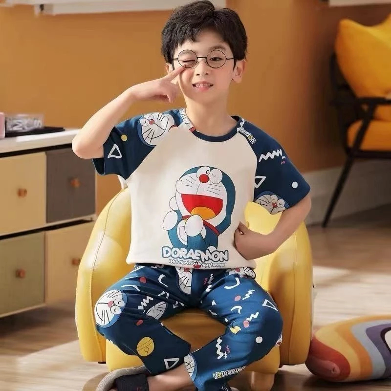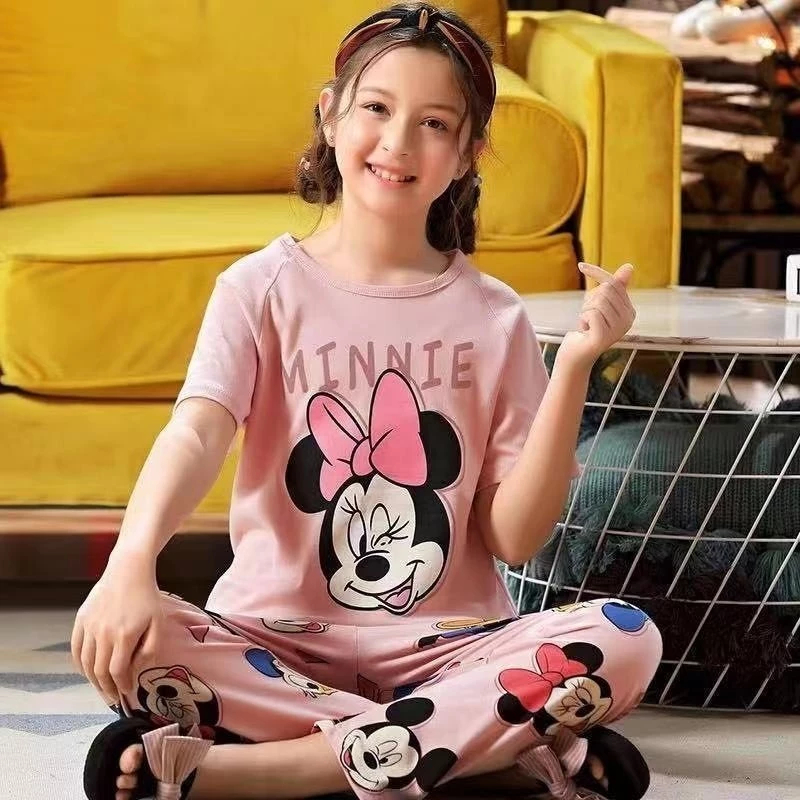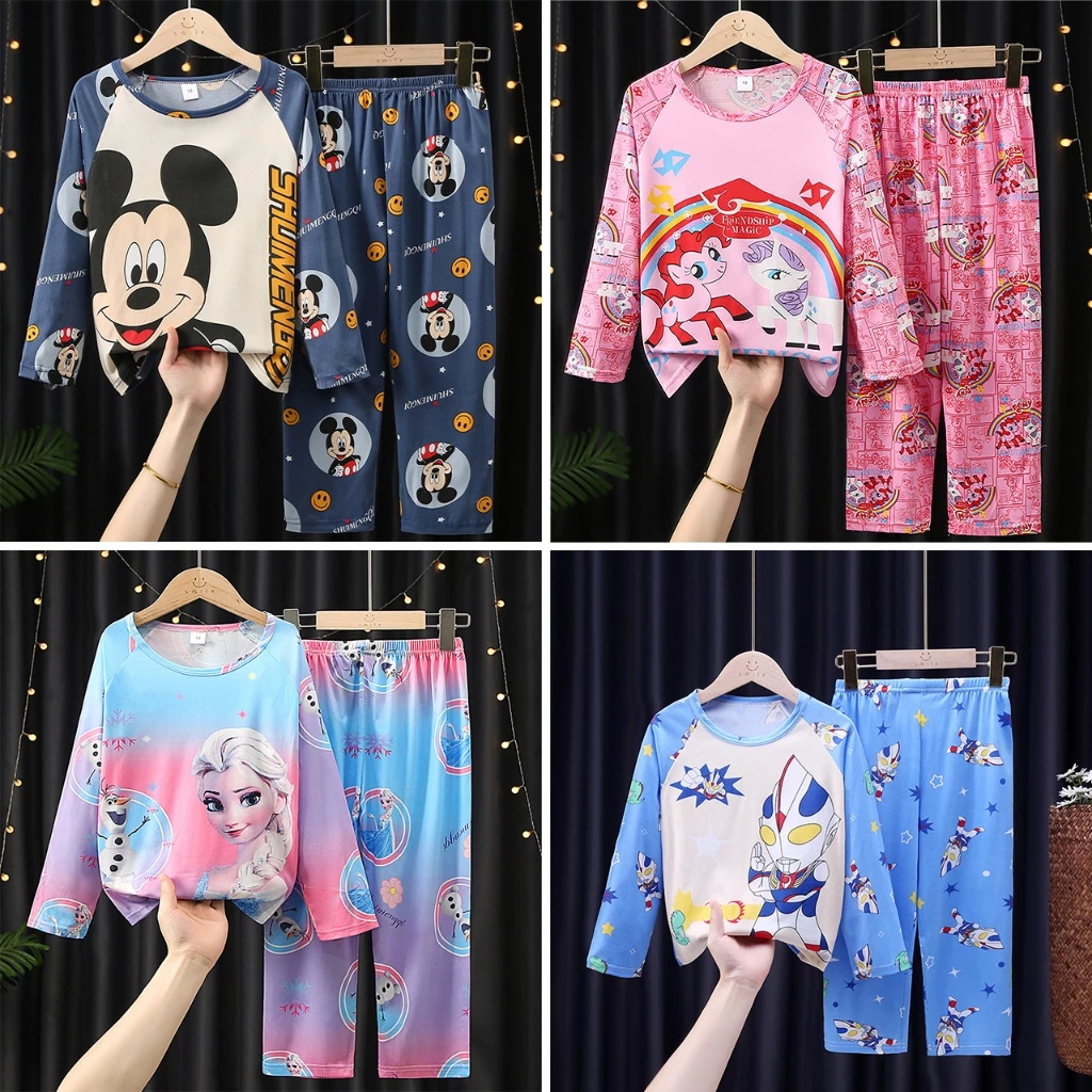 (3-14yrs) Baju Tidur Budak kartun Kids Pyjamas Short-Sleeved Long Pants Sleepwear Frozen Spider Cartoon Set 0623