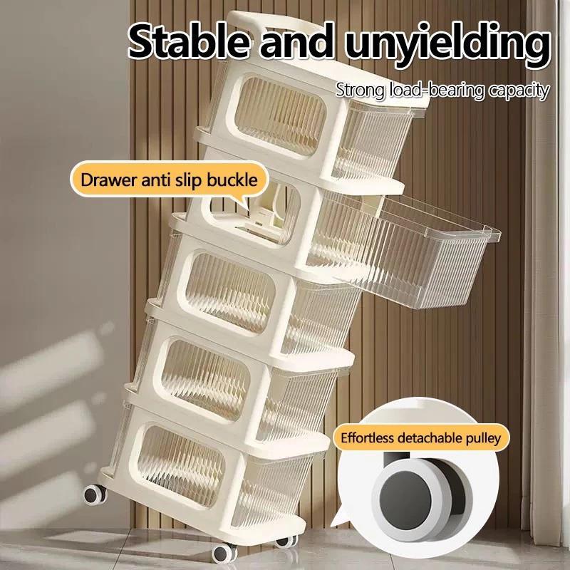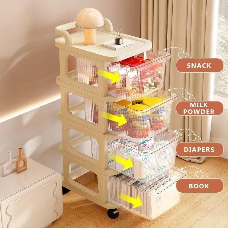 3/4/5 Layer Kid Toy Snack Box Trolley Rack Drawer Cabinet Stroller Cream Style Baby Storage Rack 收纳车