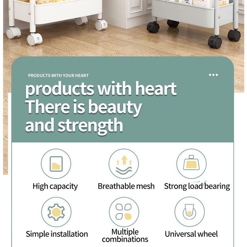 3/4/5 Layer Multifunction Storage Trolley Rack Kitchen Rack Rack Book Shelving With Plastic Wheel推车置物