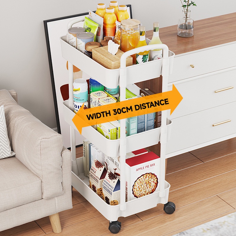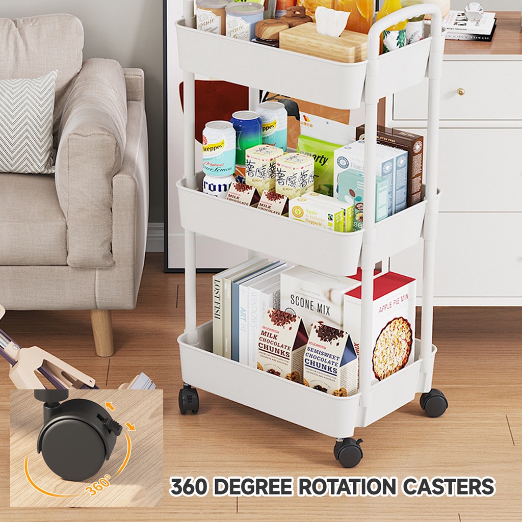 3/4/5 Tier Rolling Storage Trolley – Multipurpose Basket Organizer Cart with Handle for Kitchen, Bathroom, Snacks
