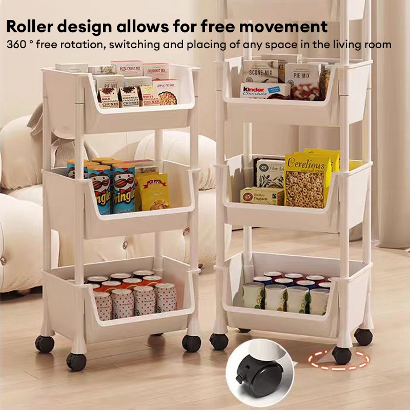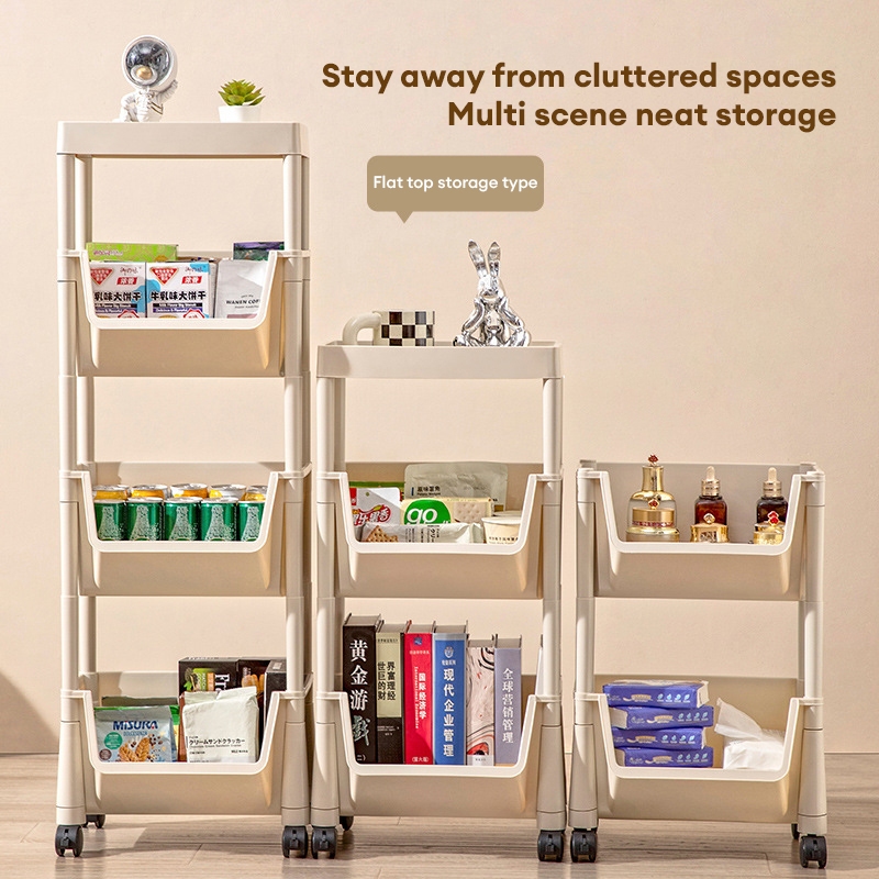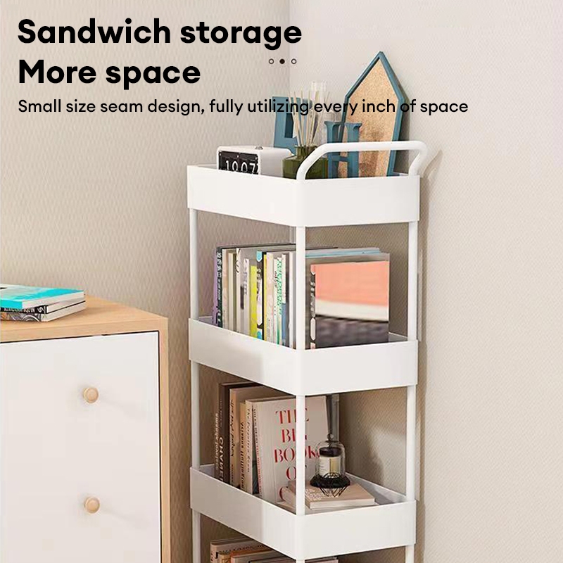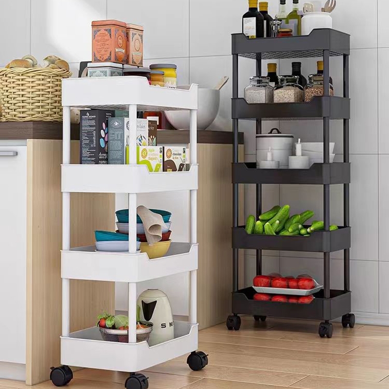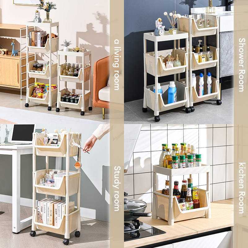 3/4/5 Tier Trolley Rack Multipurpose Storage Rack Baby Rack Book Toys Bathroom Kitchen Shelving with Wheel without installation