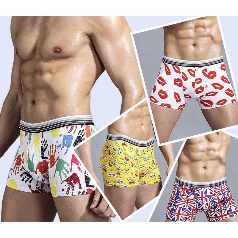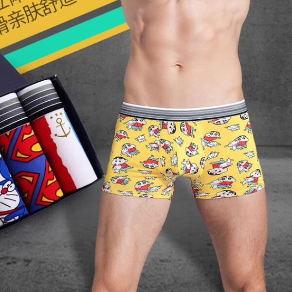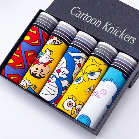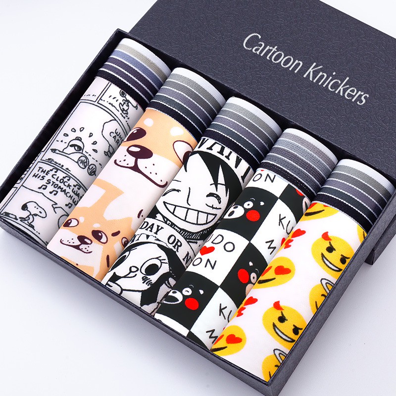 3/5PCS Men's Cartoon Boxers Youth Panties Ice Silk Breathable Underwear Men Boxer Seluar Dalam Lelaki