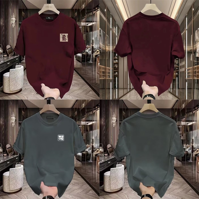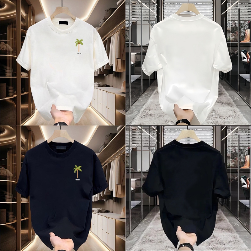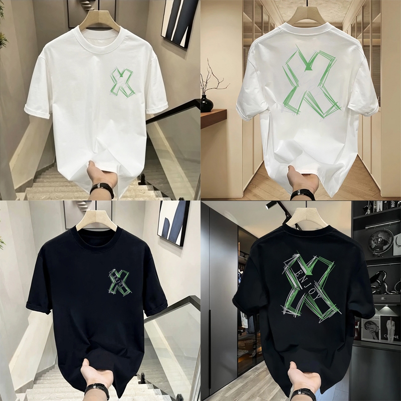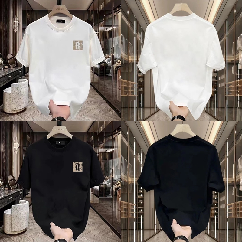 [3 Colors] Summer New Cotton Letter R Printed Short Sleeve Round Neck T-shirt Loose Black White Red Leisure Street Wear for Men