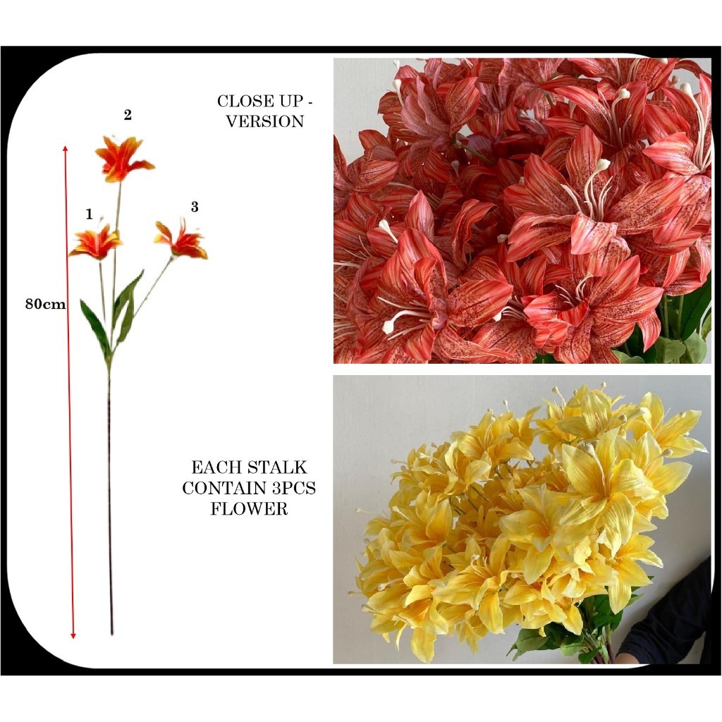 3 Head Perfume Lily Flower Wedding Home Decor | Bunga Pelamin Murah Peony Hantaran Bunga Hiasan Rumah Bunga Hantaran