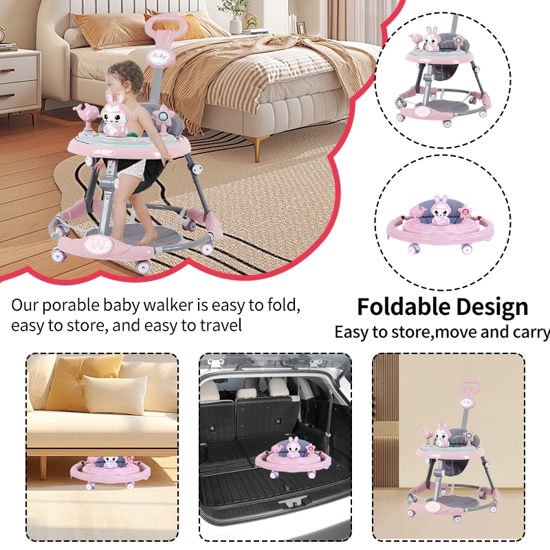 3 in 1 Foldable walker bab ymultifunction murah Adjustable Heights walker with Music学步车