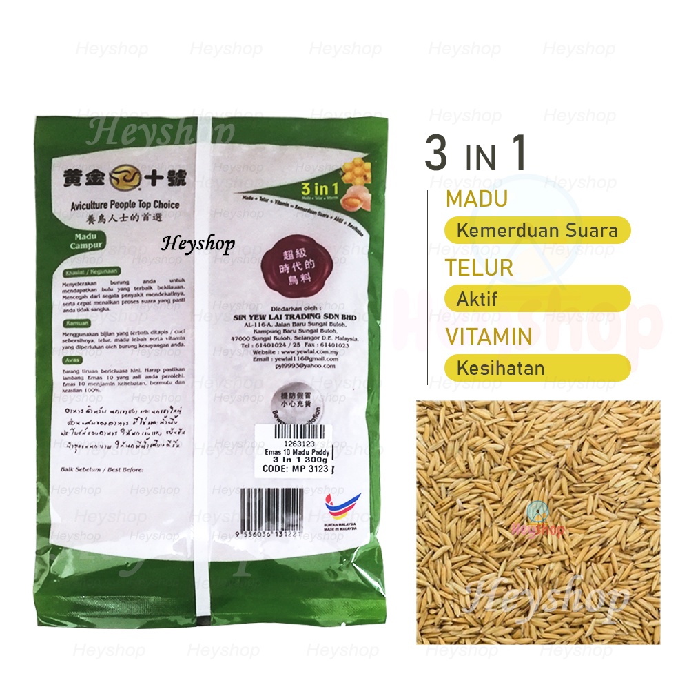 3 in 1 Honey Paddy 300g - Emas 10 Bird Food Padi Madu Makanan Burung Natural Bird Feed Sekoi Campur