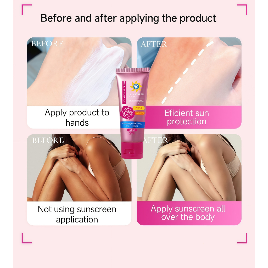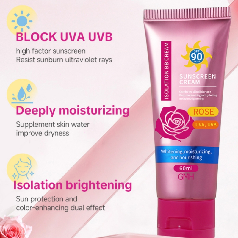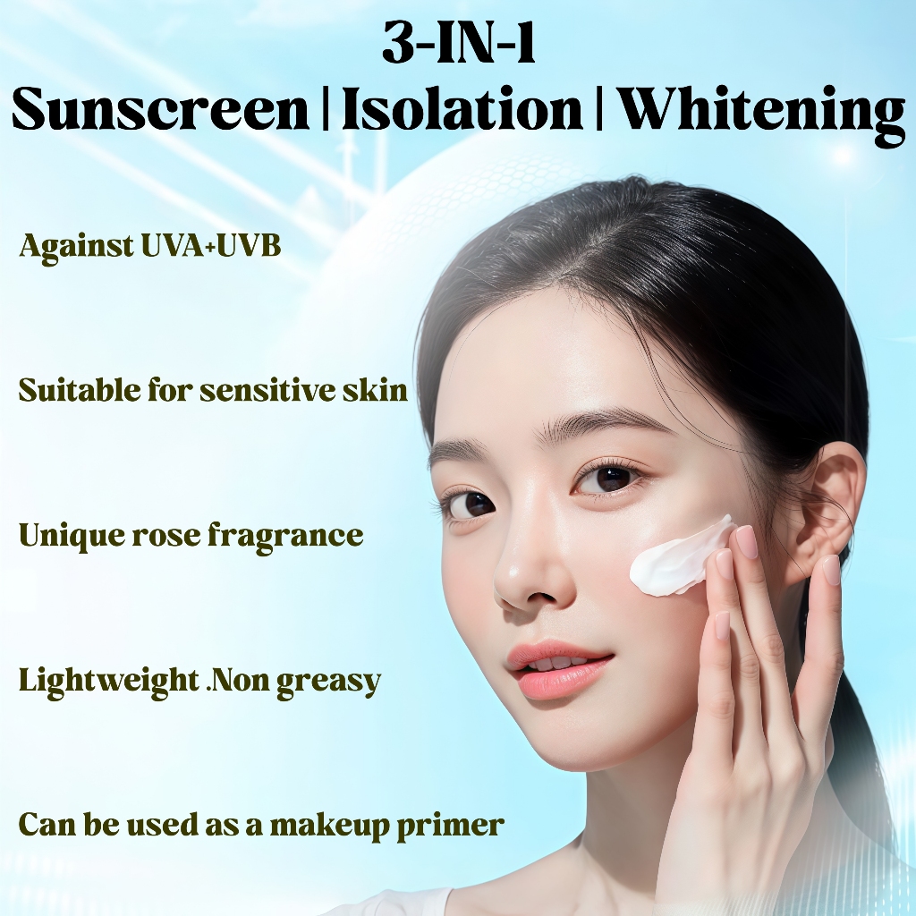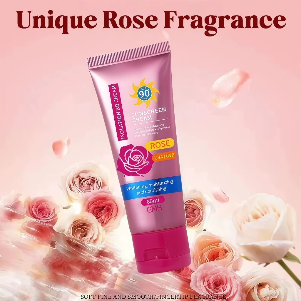 3-IN-1 Rose PrimerSunscreen Whitening Cream SPF90+++ 60ML Face & Body High Protection UV Sunblock