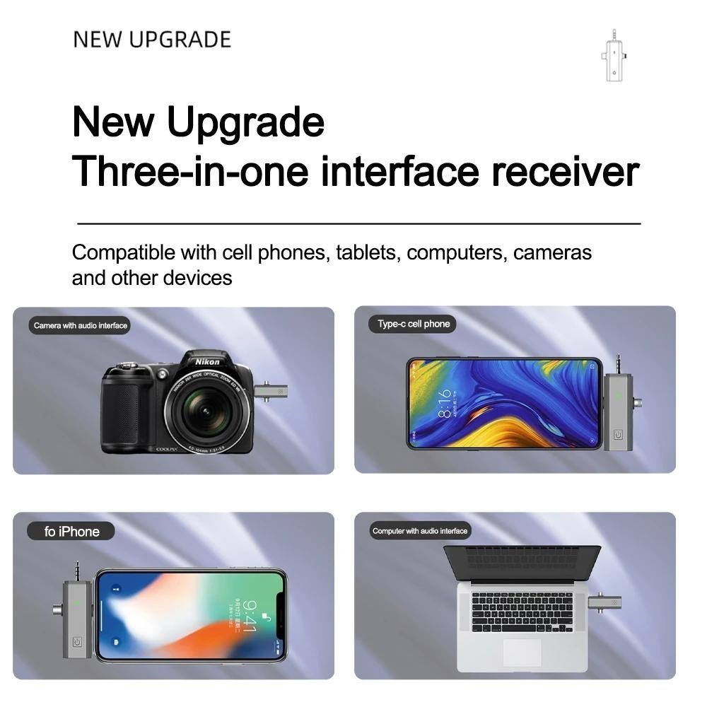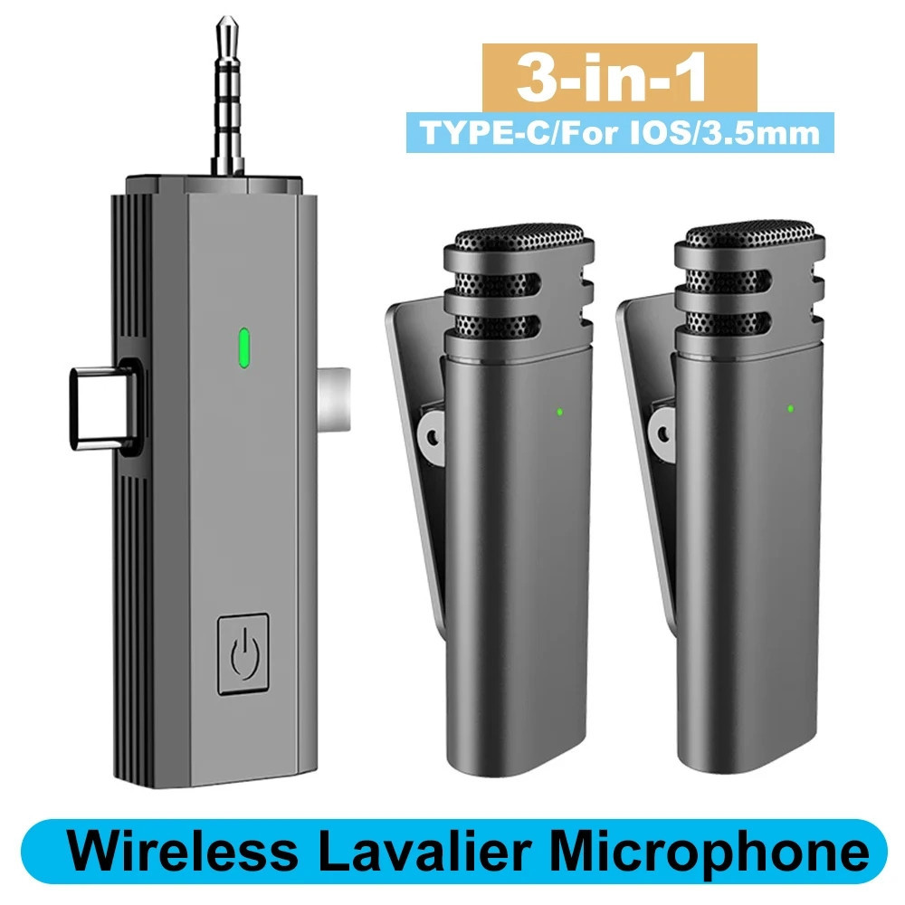 3 In 1 Wireless Lavalier Microphone Intelligent Lapel Microphone Noise-Reducing Mic For IOS Type-C 3.5mm Jack Smartphone Android SLR Camera Loudspeaker Speaker