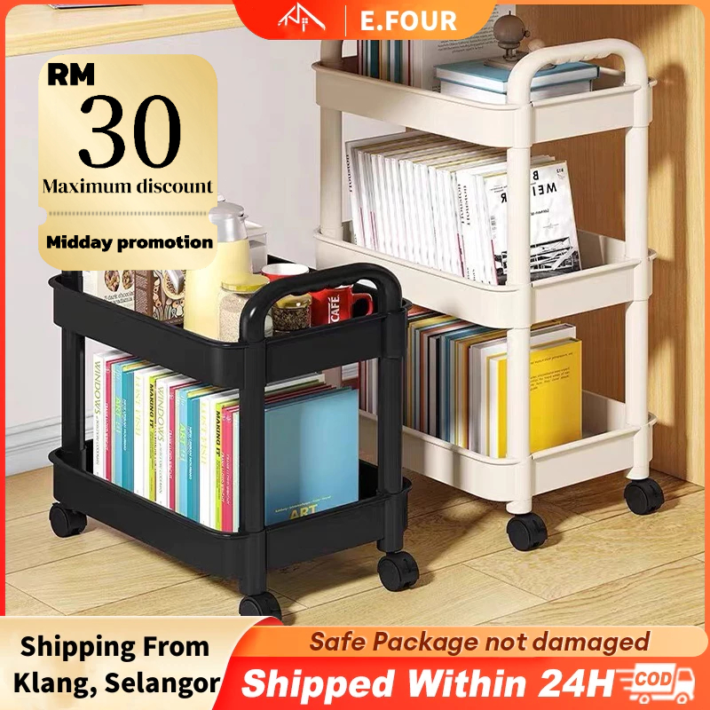 3 Layer Storage Rack With Wheels Movable Book Shelf Rack Household Kitchen Storage Rak Box Buku書本收納架