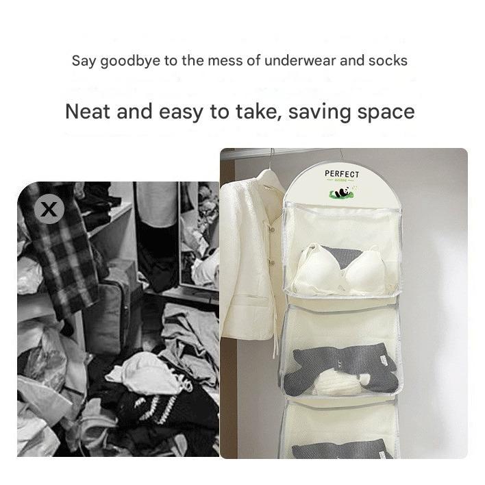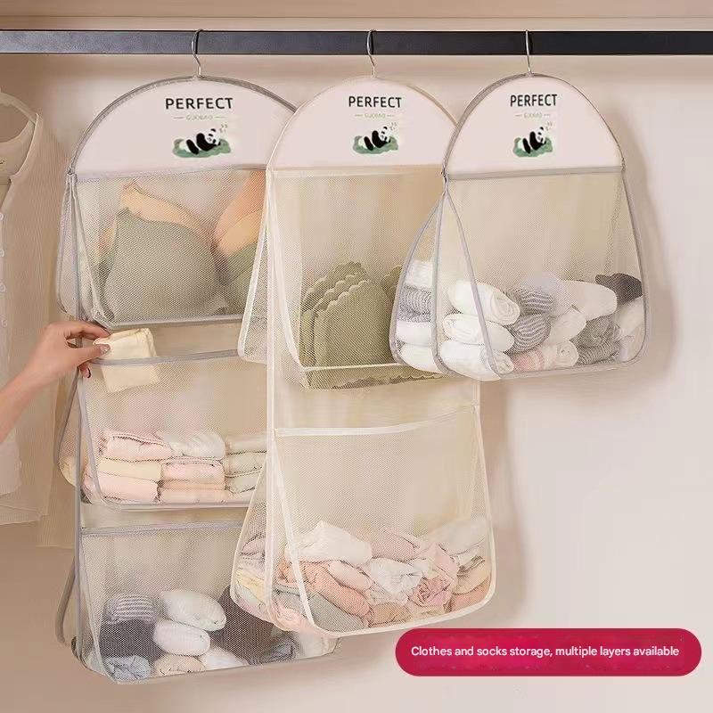 3 layers New Underwear Storage Hanging Bag Dormitory Wardrobe Socks Hanging Net Pocket Storage Bag Door Rear Sorting Bag