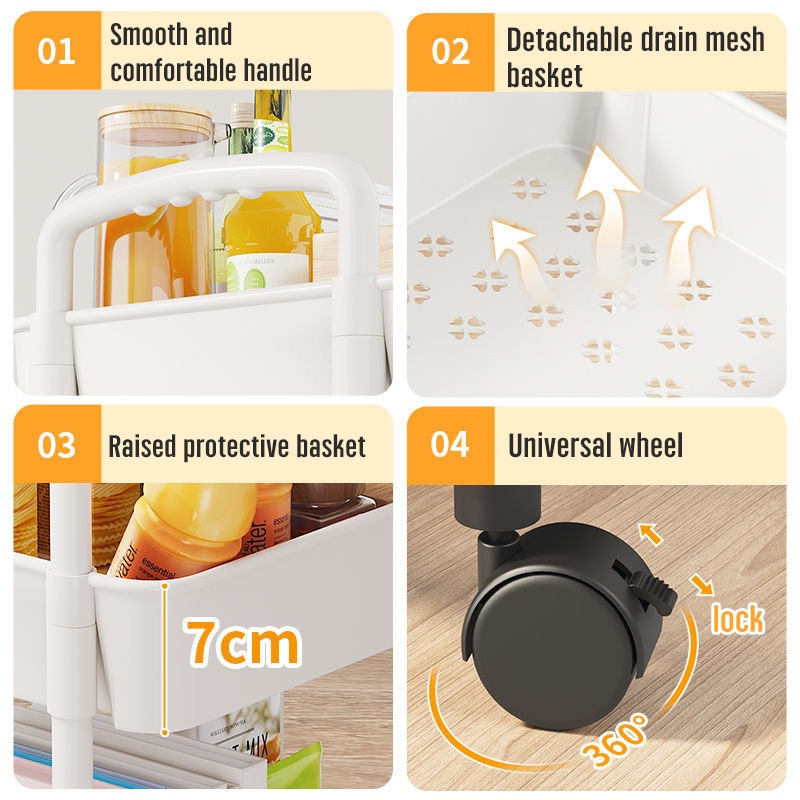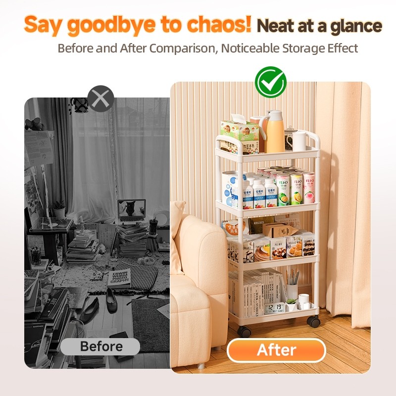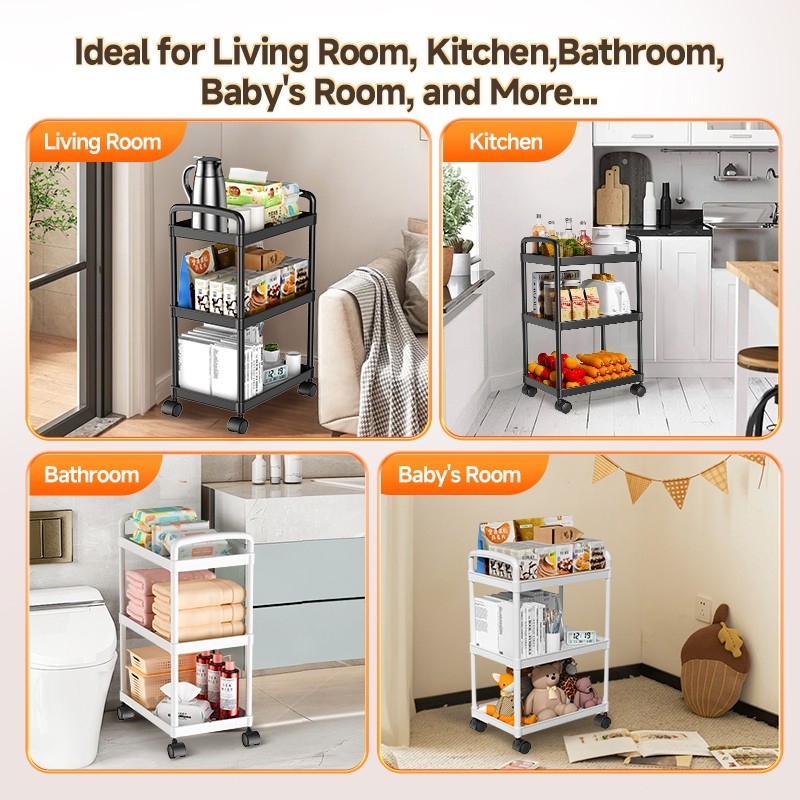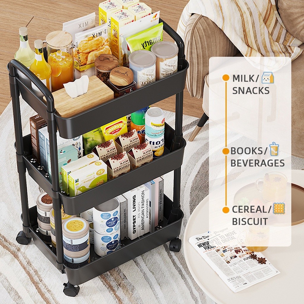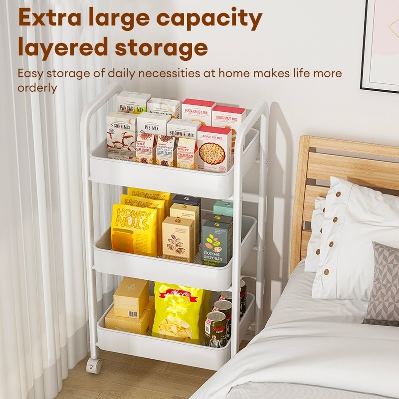 3 Layers Trolley Living Room Trolley Cart Organizer Storage Shelf on Wheels