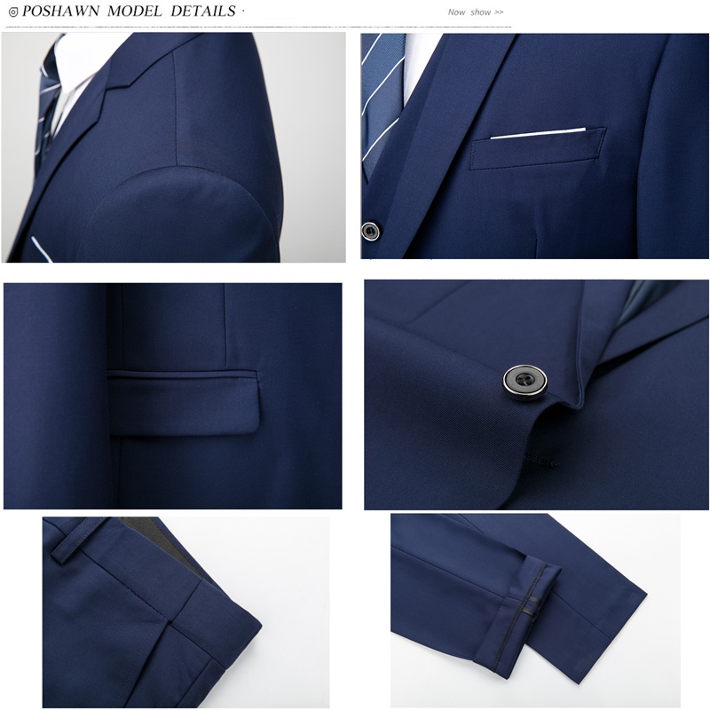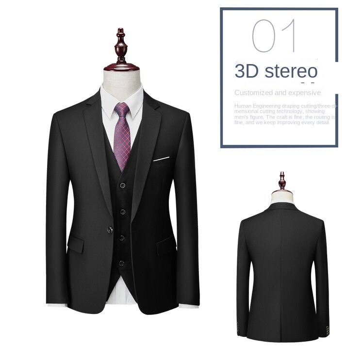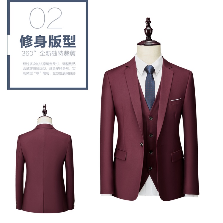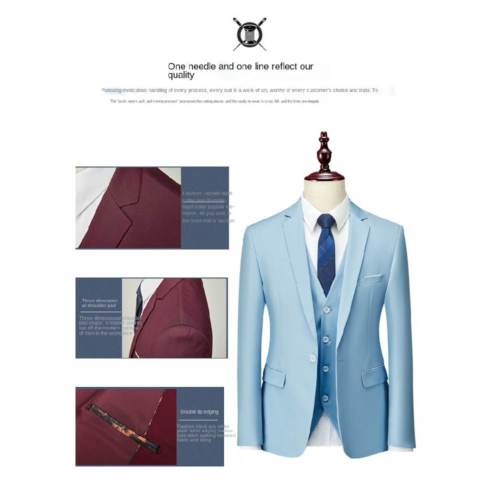 ?3-Piece Set? Men Suits 3-Pieces Set Formal Business Wedding Casual Korean Slim Fit Blazer Office Coat Jackets Tuxedo Sut lelaki