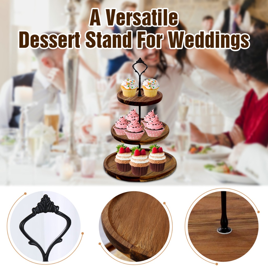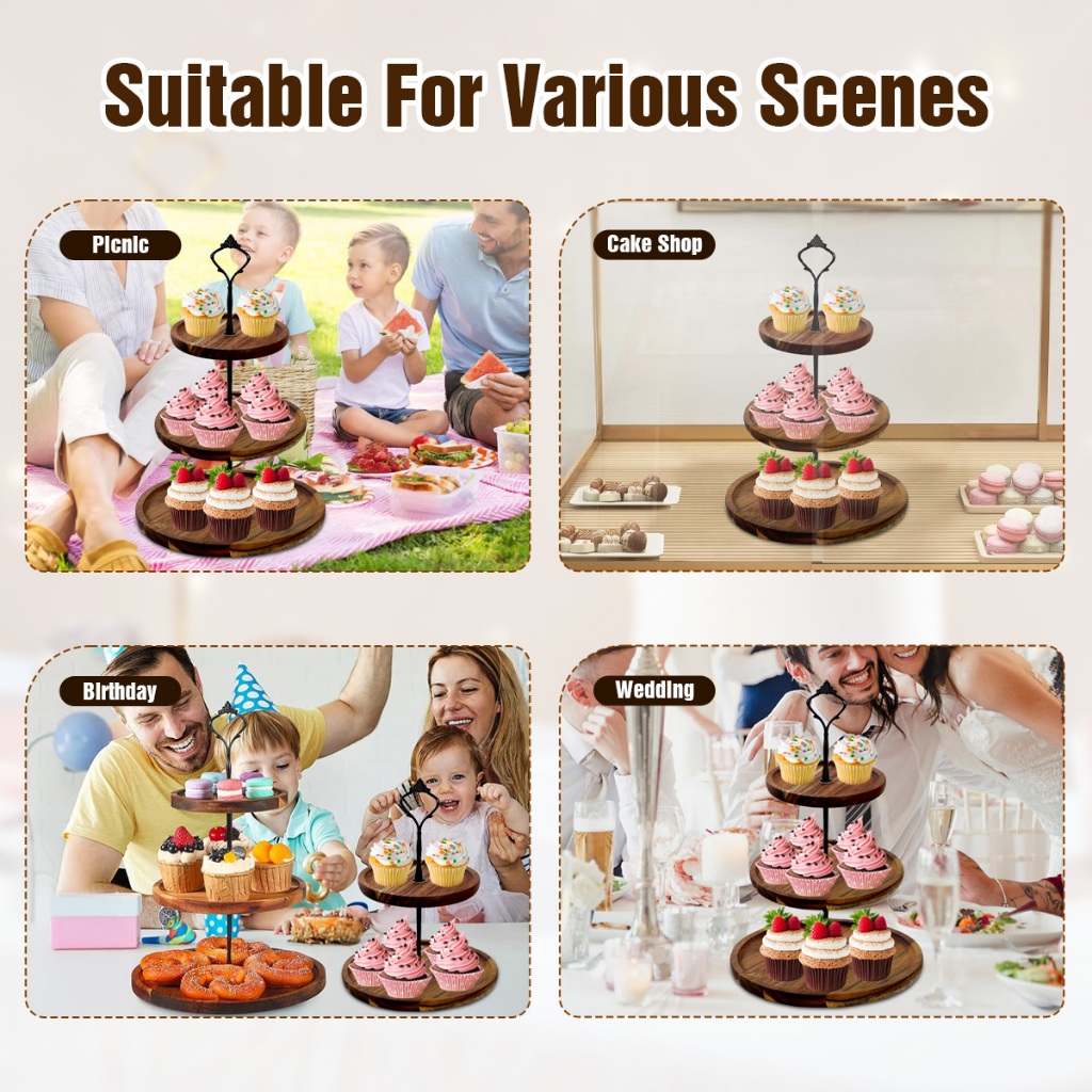 3 Tier Cupcake Stand, Farmhouse Rustic Tiered Serving Tray,3 Tier Serving Tray for Farmhouse Kitchen Decor, Wood Dessert Tray for Tea Party Wedding Server, Decorative Tiered Tray.