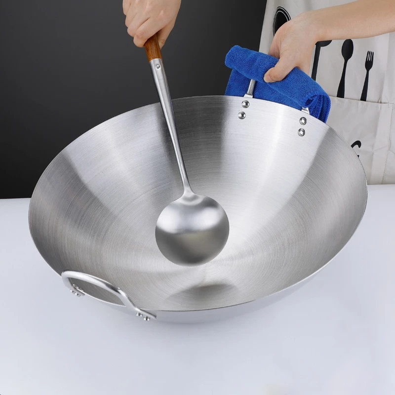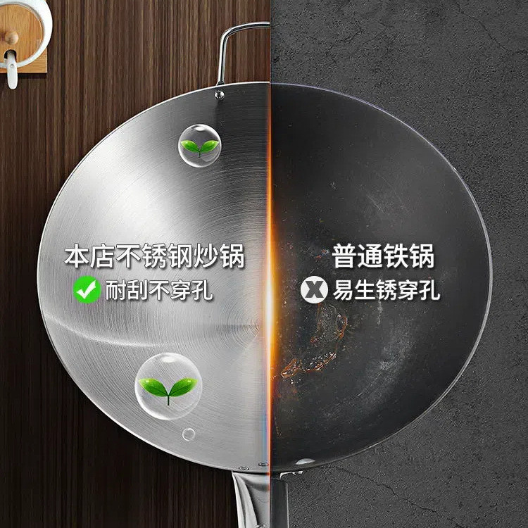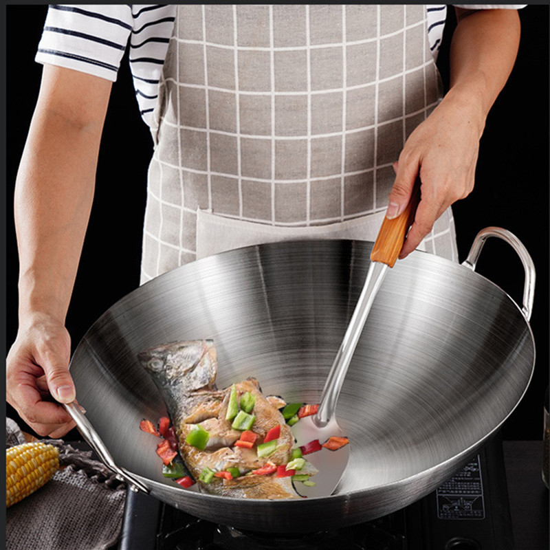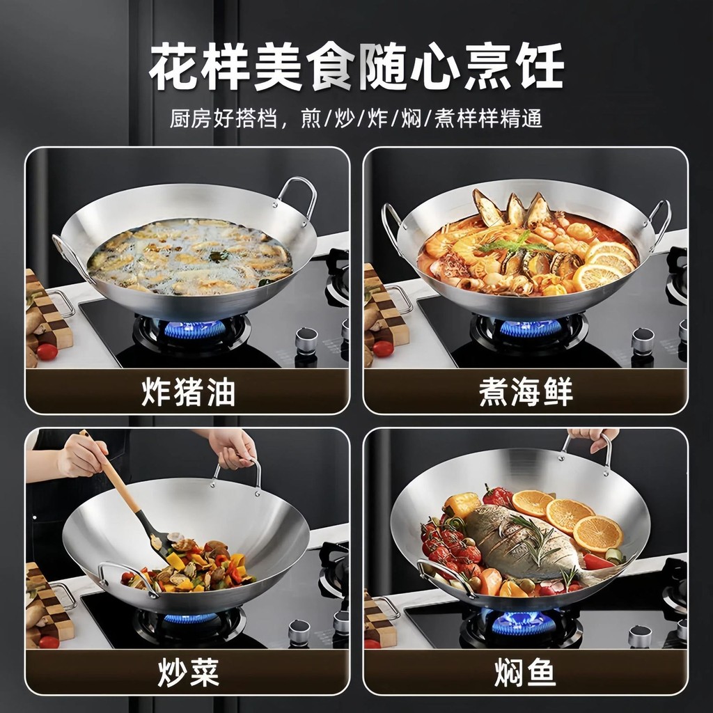 30-55CM Large Size Stainless Steel Double Ears Non-stick Wok High Quality Double Handle Household Kitchen Frying Pan