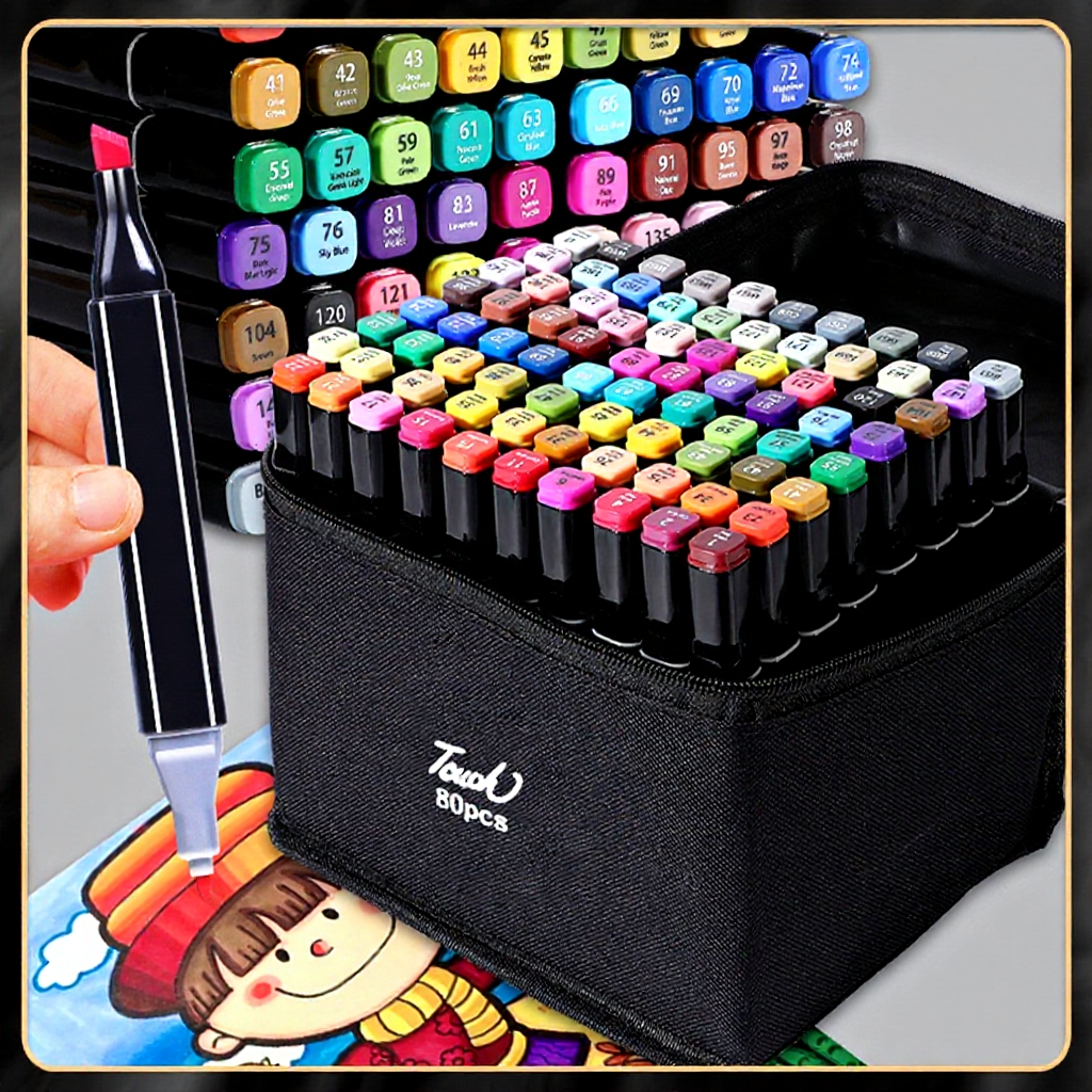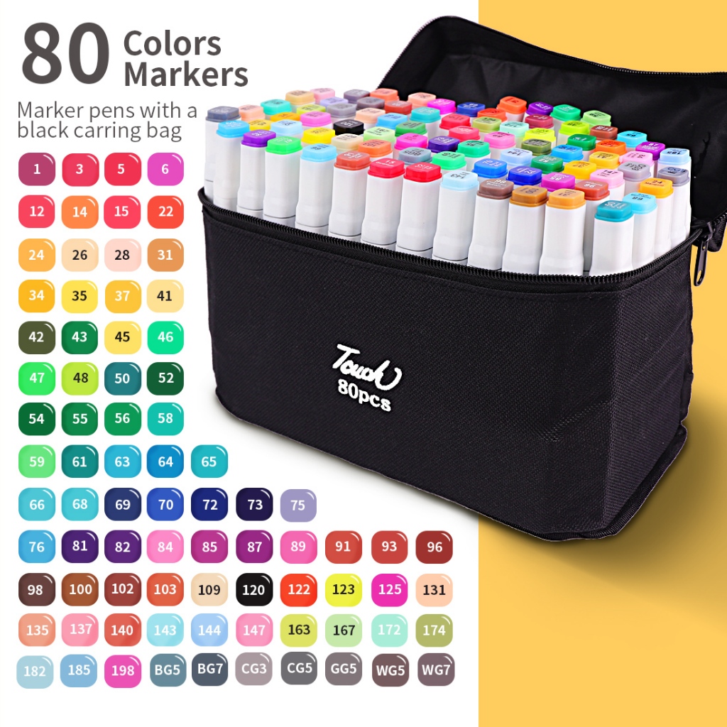 30/80 Colors Sketching Art Markers Highlighters Pen Dual Tips Drawing Set Stationery Supplies