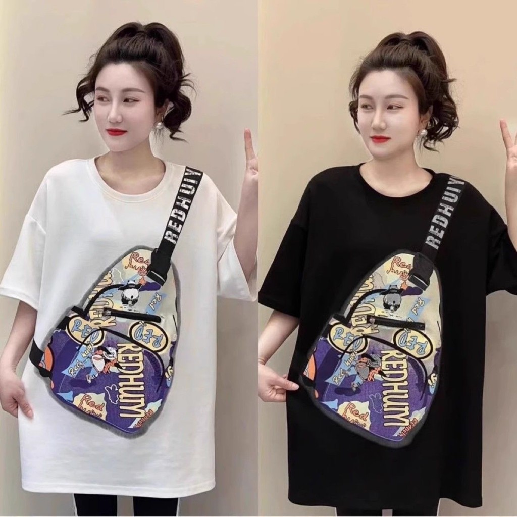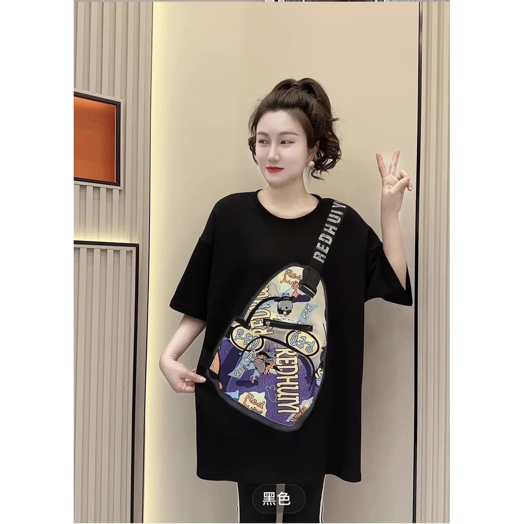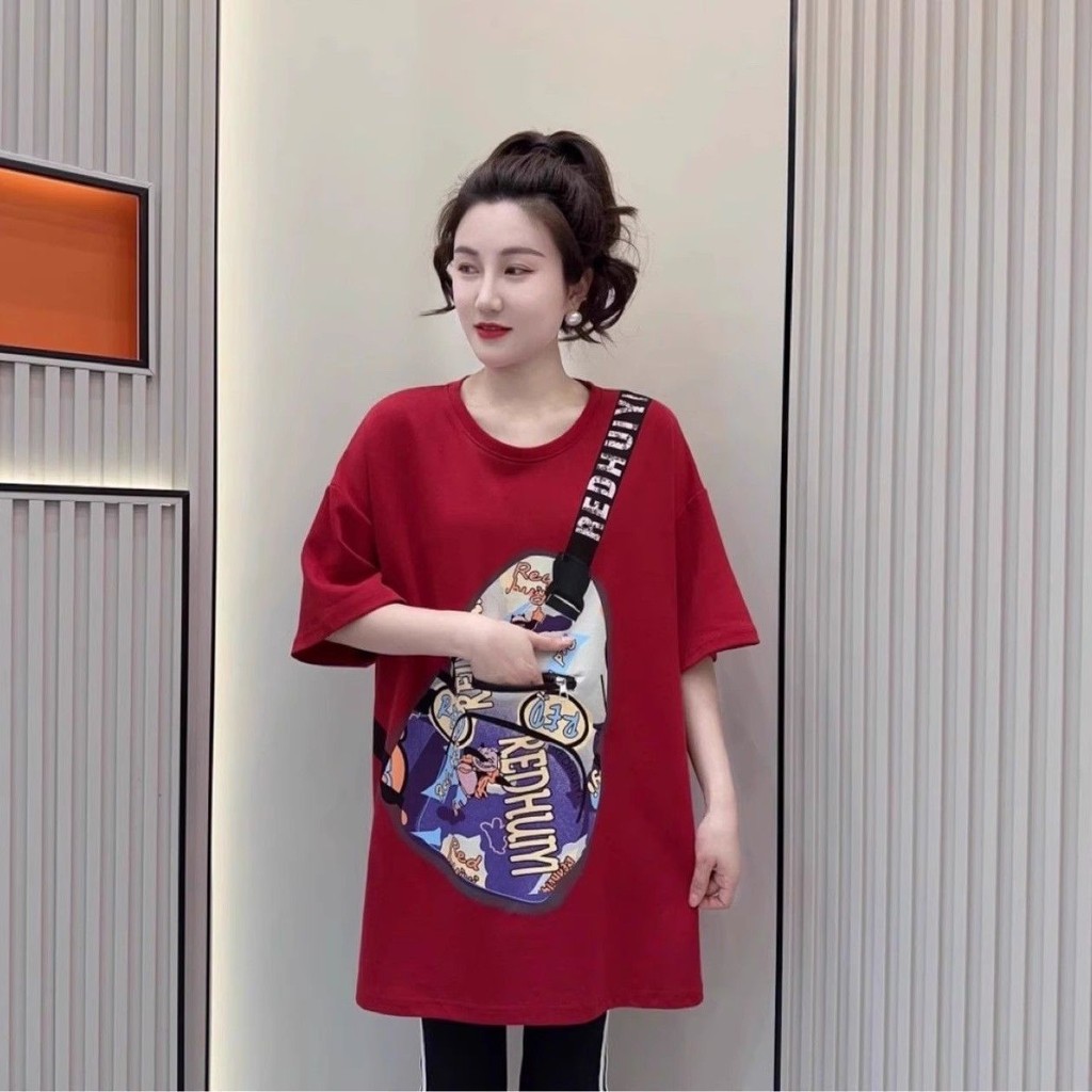 快速出货 顯瘦 時尚 休閒 上衣女 300斤大码印花短袖T恤女夏季新款中长款宽松显瘦时尚休闲上衣 Fast Shipping 150kg Large Size Printed Short-Sleeved T-Shirt Women Summer New Style Mid-Length Loose Slimmer Look Fashion Casual Top