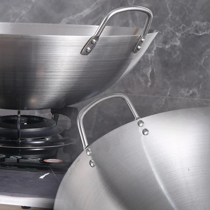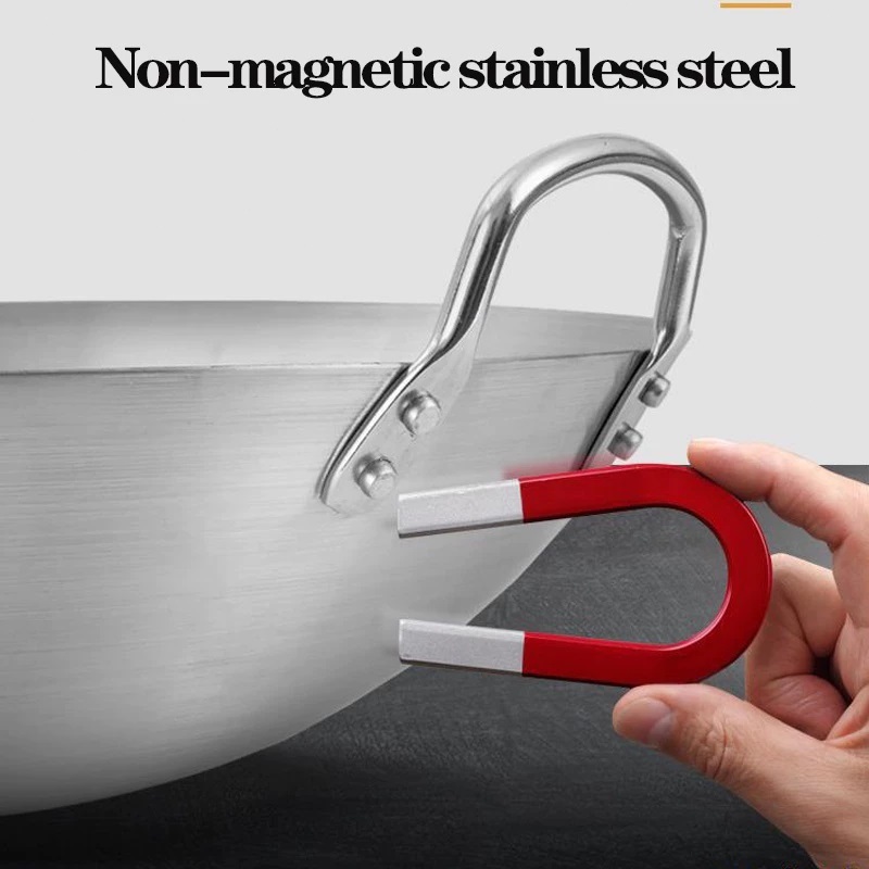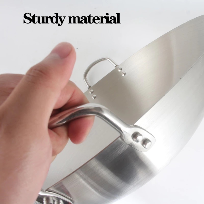 【30cm-55cm】 304 Stainless Steel Kuali Non-stick Wok with Double Ears High Quality Double Handle Kitchen Frying Pan