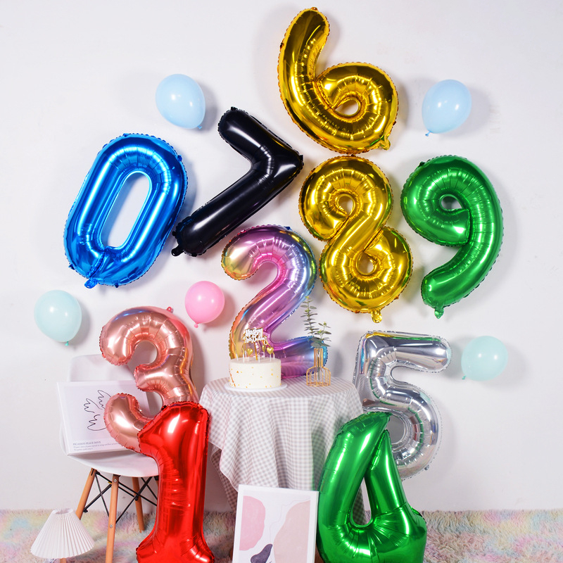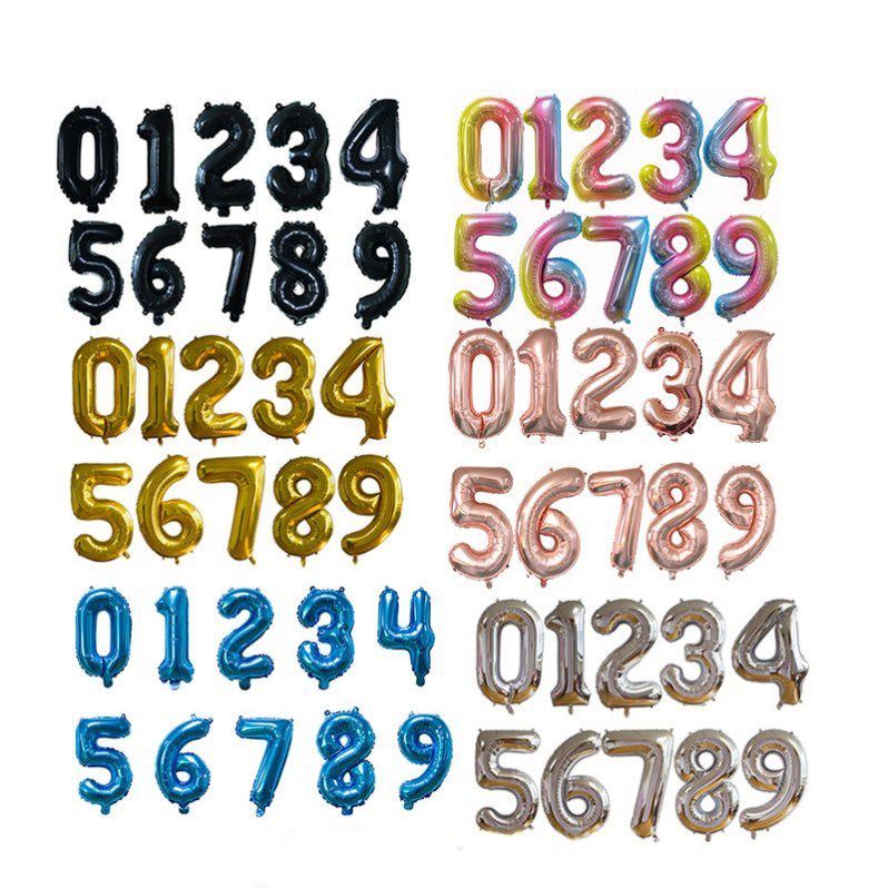 32 Inch Number Aluminum Foil Balloon 0-9 Bit Helium Balloons Happy Birthday Happy New Year Wedding Party Decoration Numbers balloons Gold Silver Black Pink belon huruf tulisan merah hari jadi nama sai