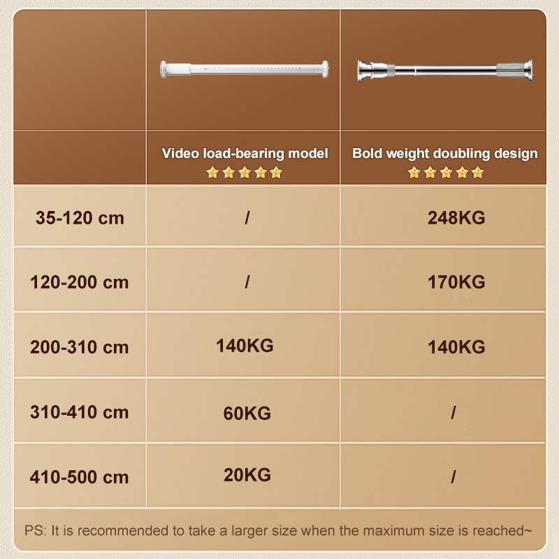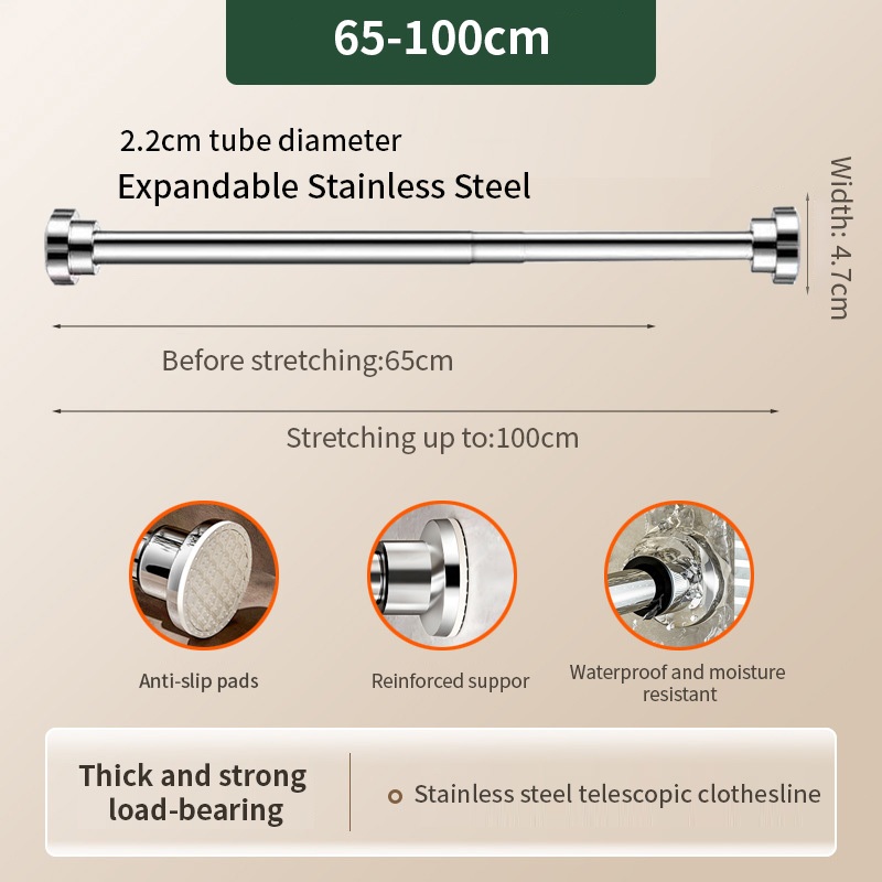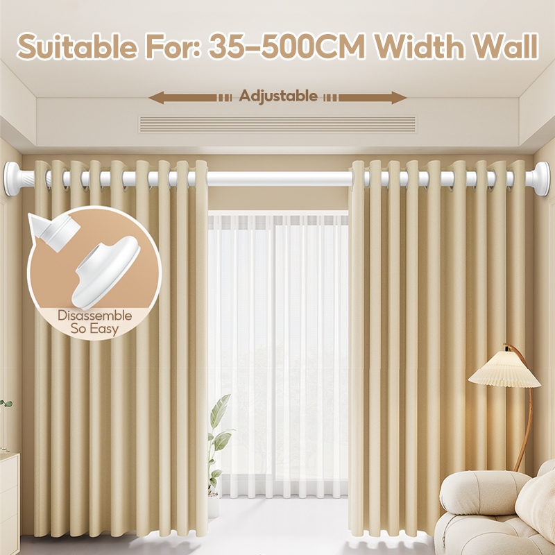 35-500cm Adjustable Curtain Rod Stainless Steel Drying Rack Anti-slip Shower Telescopic Rods Batang Langsir 伸缩窗帘杆