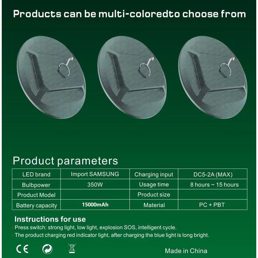 350W Ultra Thin Light Rechargeable LED Light Bulb (72LED) Emergency UFO Light Lampu LED For Pasar Malam Camping Outdoor