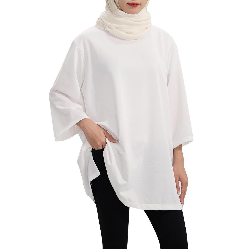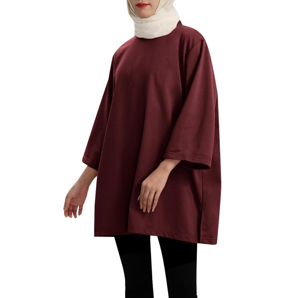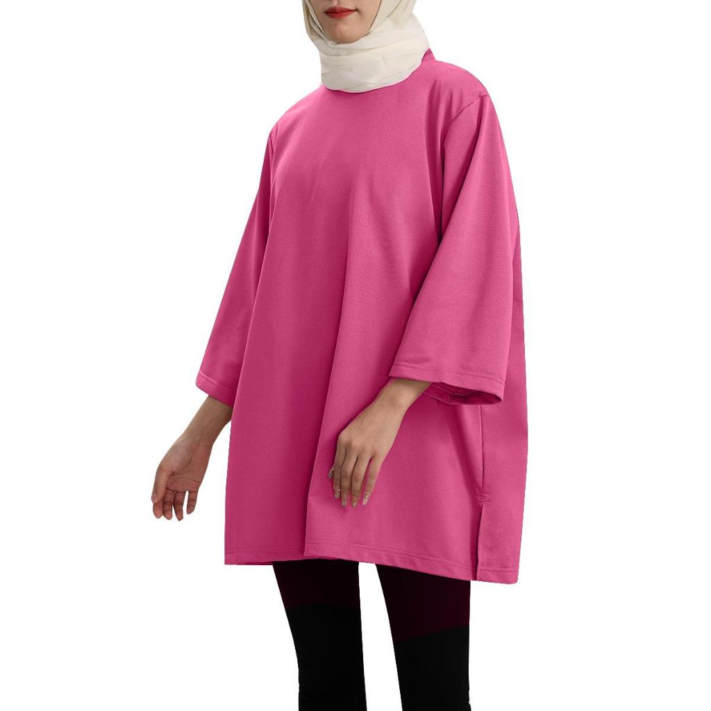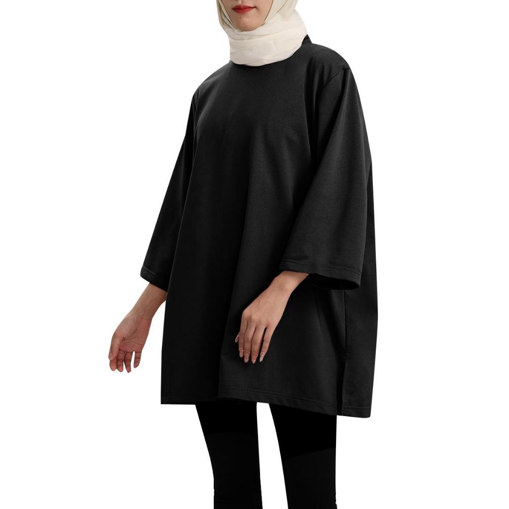 #352 baju muslimah plus size lengan panjang crop top for women kemeja perempuan outfit wanita baggy tshirt blouse labuh