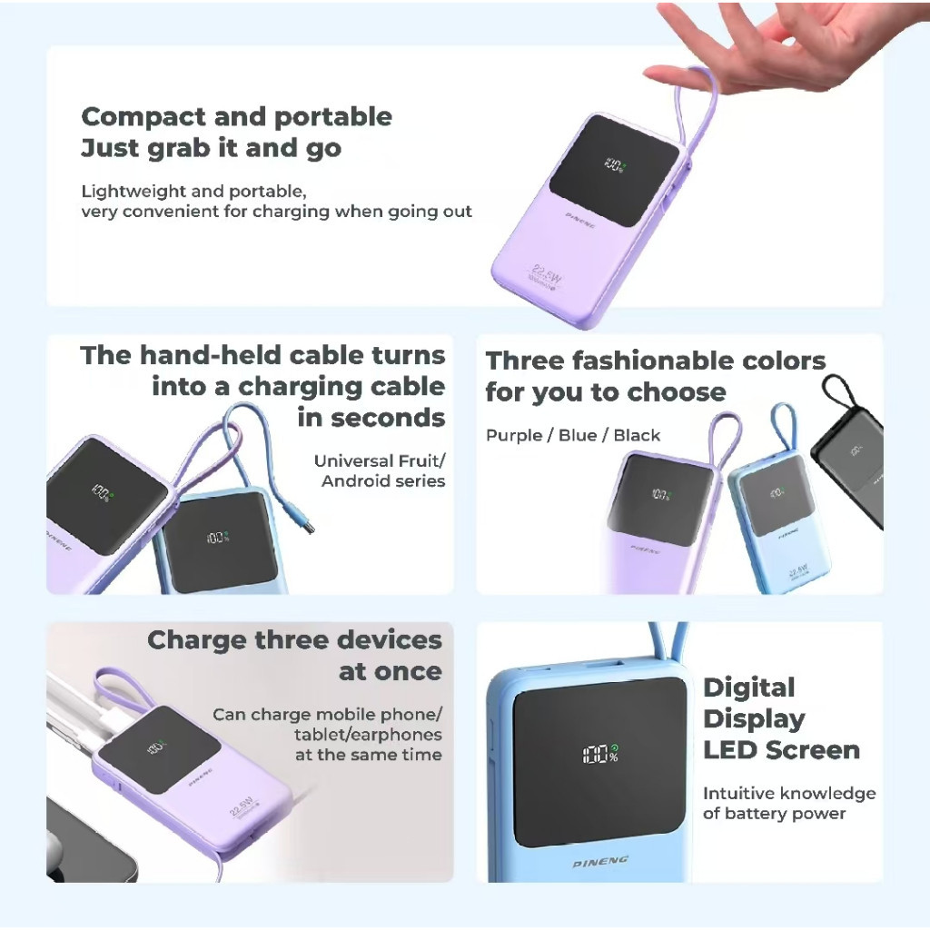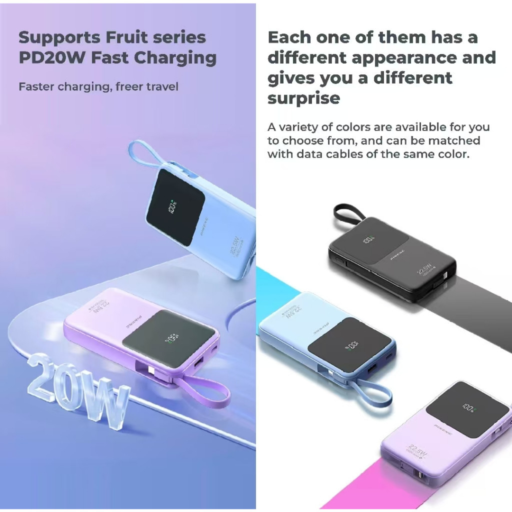 (3C Certified)WP 3C Powerbank 20000mah Fast Charging PN-891PD 45W Super Flash Charge Slim Portable Powerbank