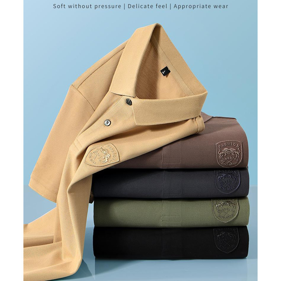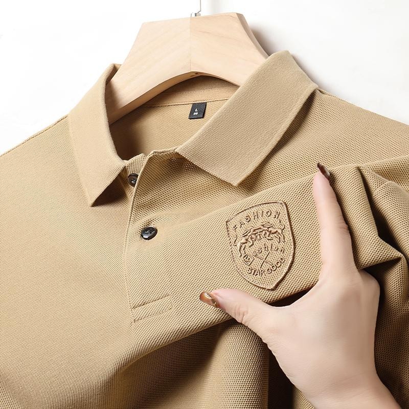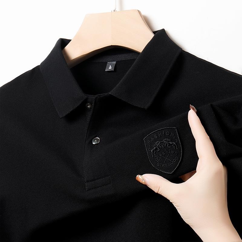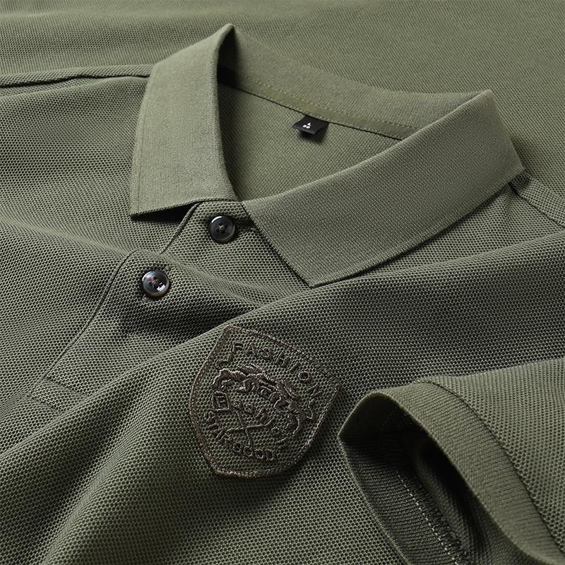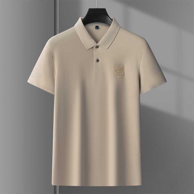 [3colors] Men's Summer Green Simple Casual Business Short Sleeve Quality Fashion Embroidered Polo Shirt Plus Size Black\ Beige