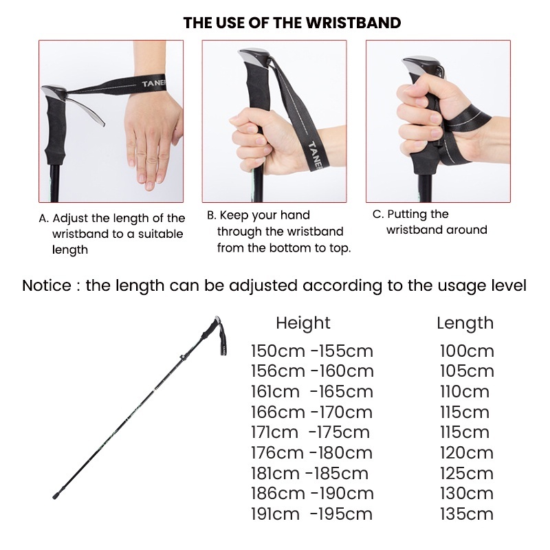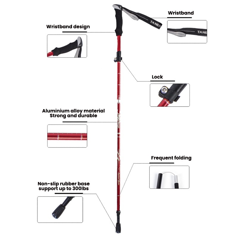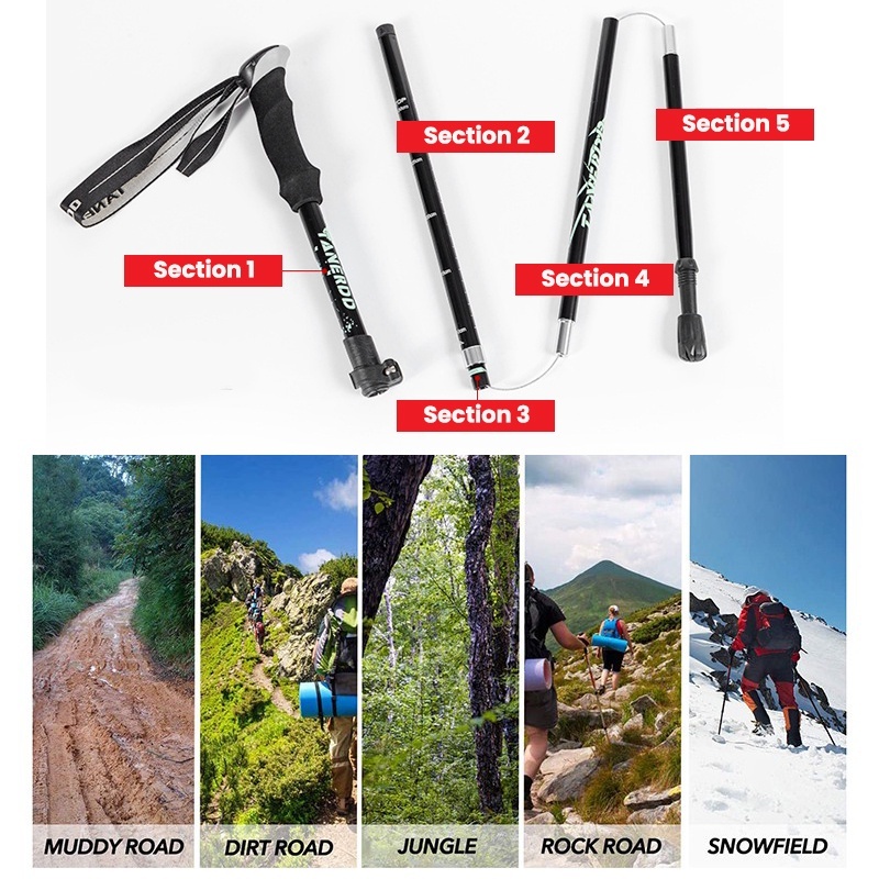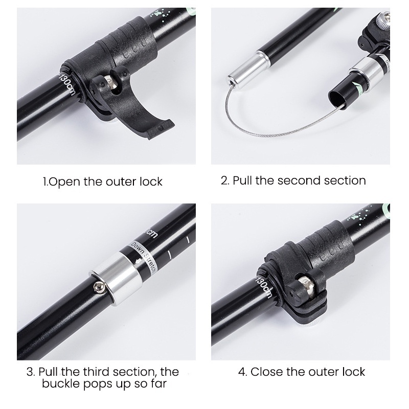 3H Tongkat Pendakian Lipat/Foldable Trekking Pole Adj Height Sokongan Kaki 3K Fiber For Hiking