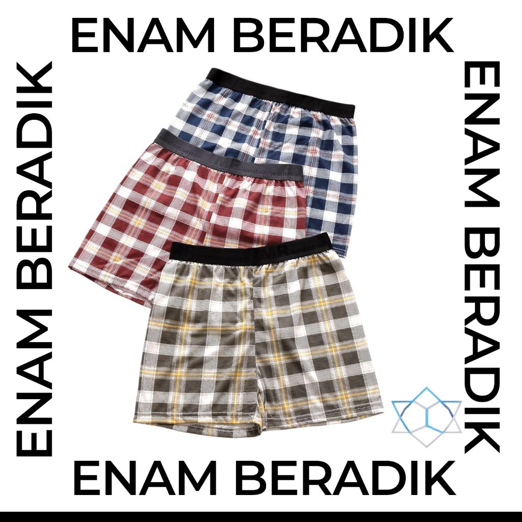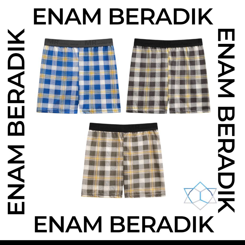 (3IN1| M-2XL) MR Clasic Printed Cotton Fiber Men Underwear Checkered Design | Boxer Corak Kotak