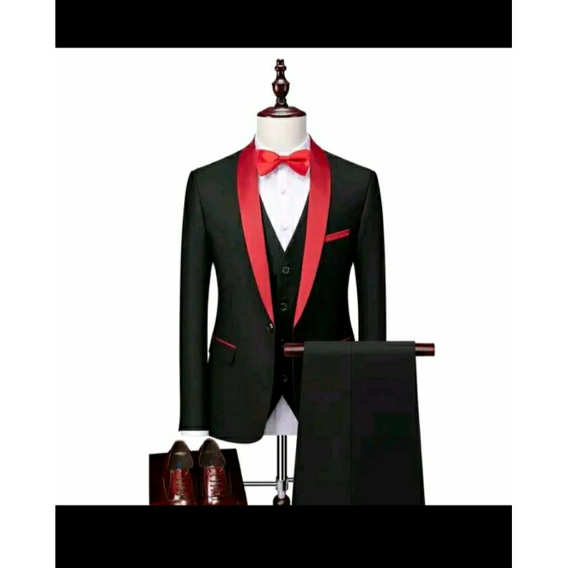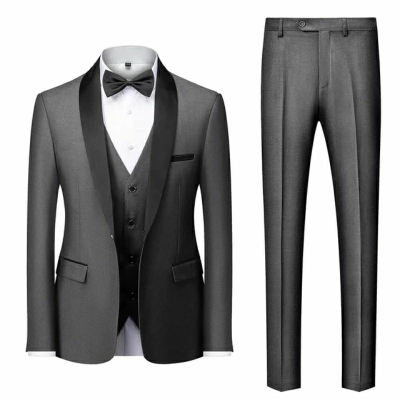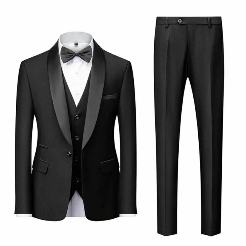 3in1 Men's Suit / Black Lapel Tuxedo Pants & Vest / Wedding Suit / slimfit men's suit